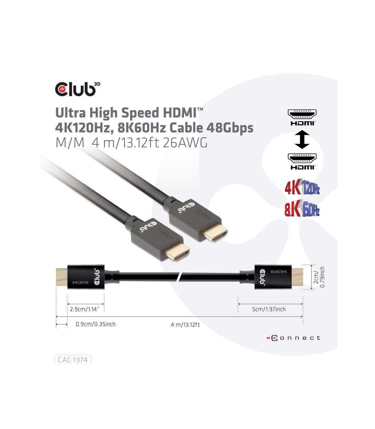 CABLE HDMI TO HDMI 4M/M/M CAC-1374 CLUB3D