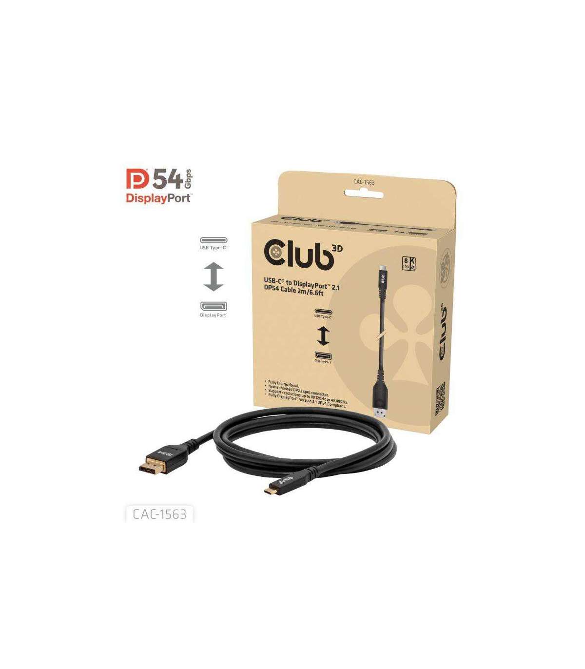 The Club 3D CAC-1563 USB-C® to DisplayPort™ 2.1 DP54 cable allows you to connect your USB-C® laptop to a DisplayPort® monitor. It can also be connected in reverse, using the DisplayPort® on your GPU to connect to a USB-C® monitor.
