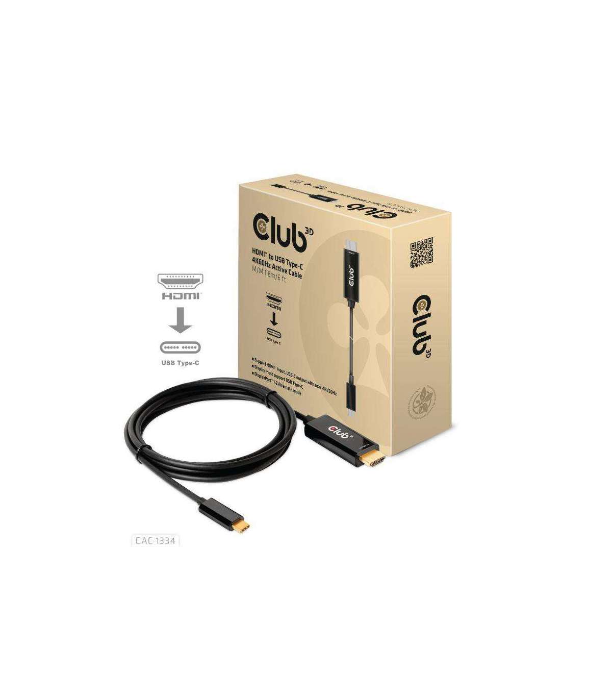 CABLE HDMI TO USB-C 1.8M/M/M CAC-1334 CLUB3D