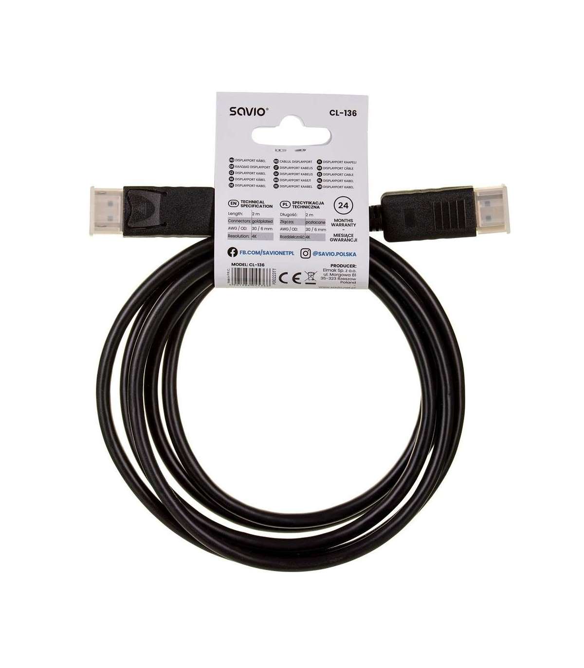 Savio CL-136 DisplayPort cable 2 m Black
