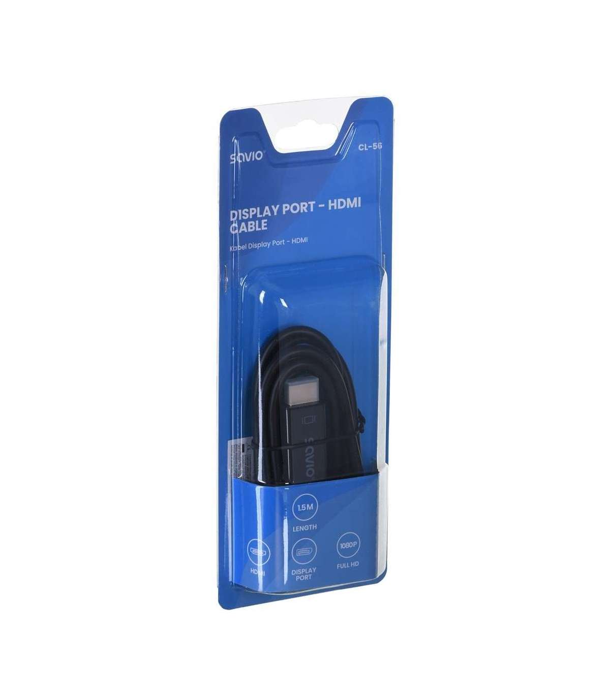 Savio CL-56 video cable adapter 1.5 m DisplayPort HDMI Type A (Standard) Black