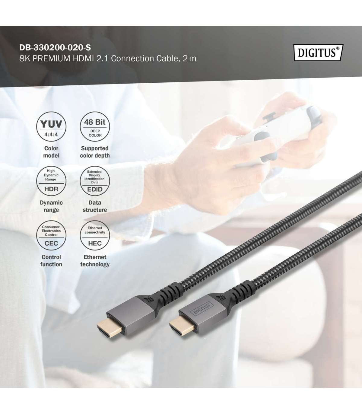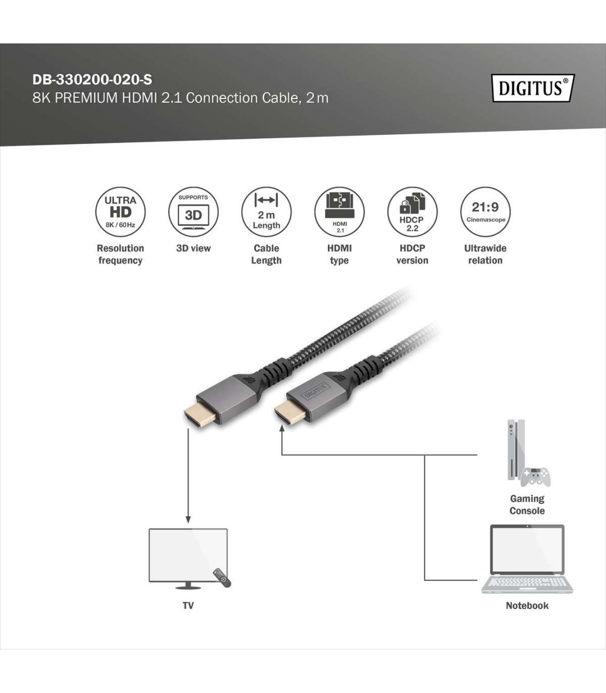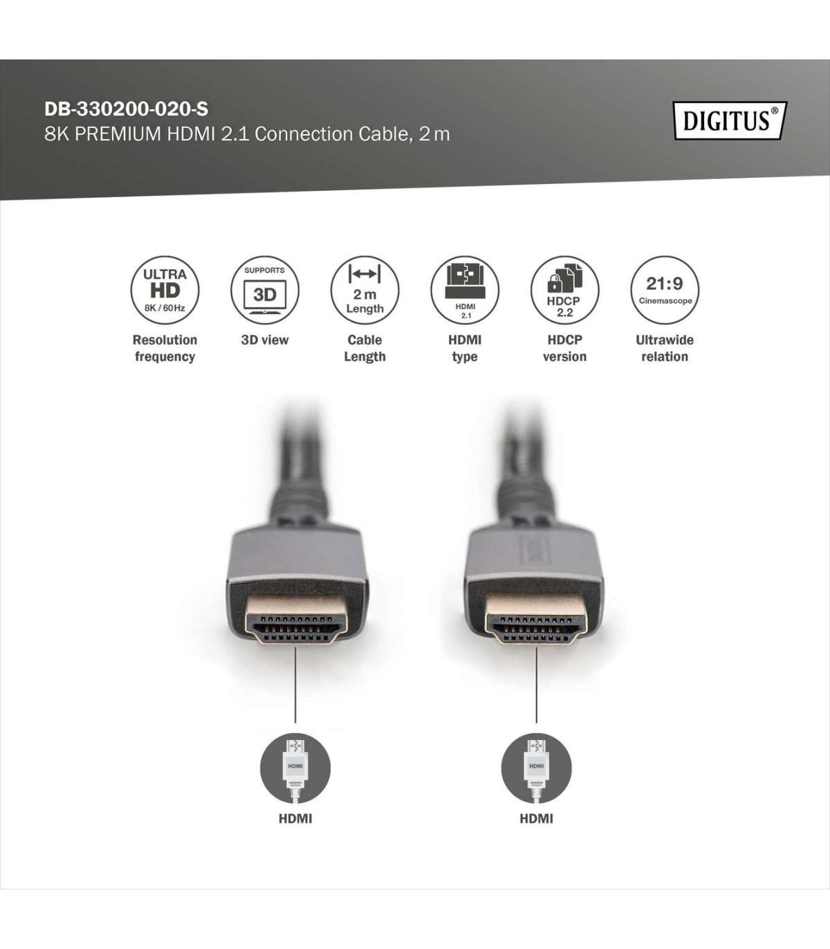 Digitus 8K HDMI Ultra High Speed Connection Cable | DB-330200-020-S | 2 m