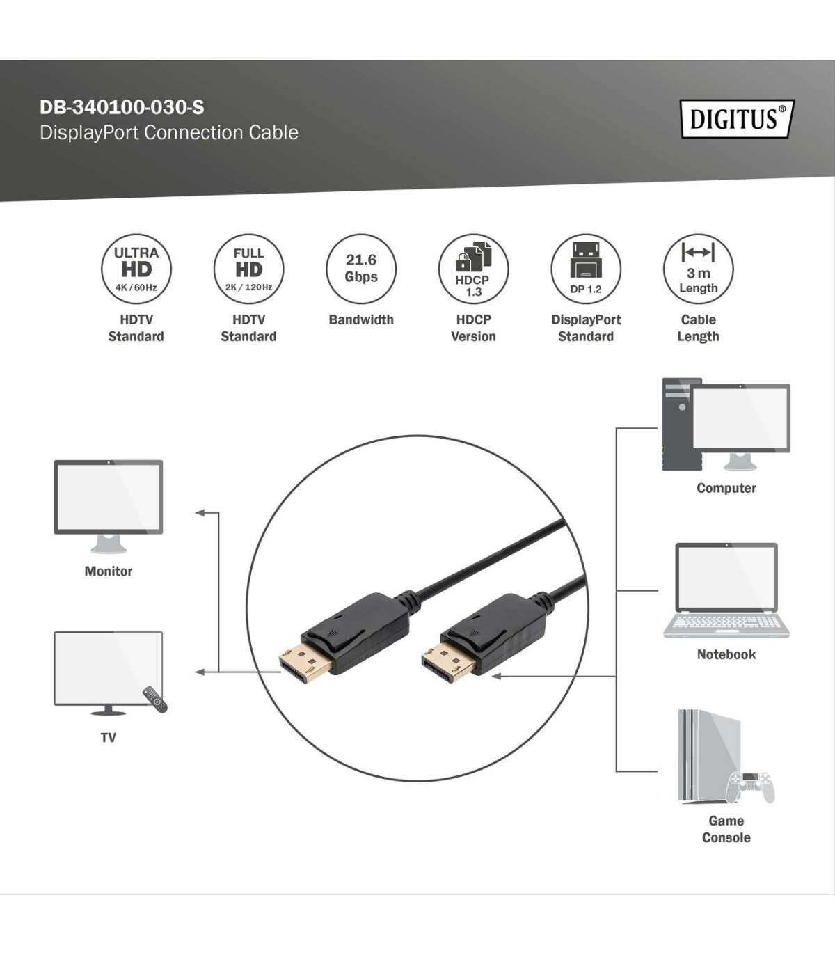 Digitus DisplayPort Connection Cable | DB-340100-030-S | 3 m