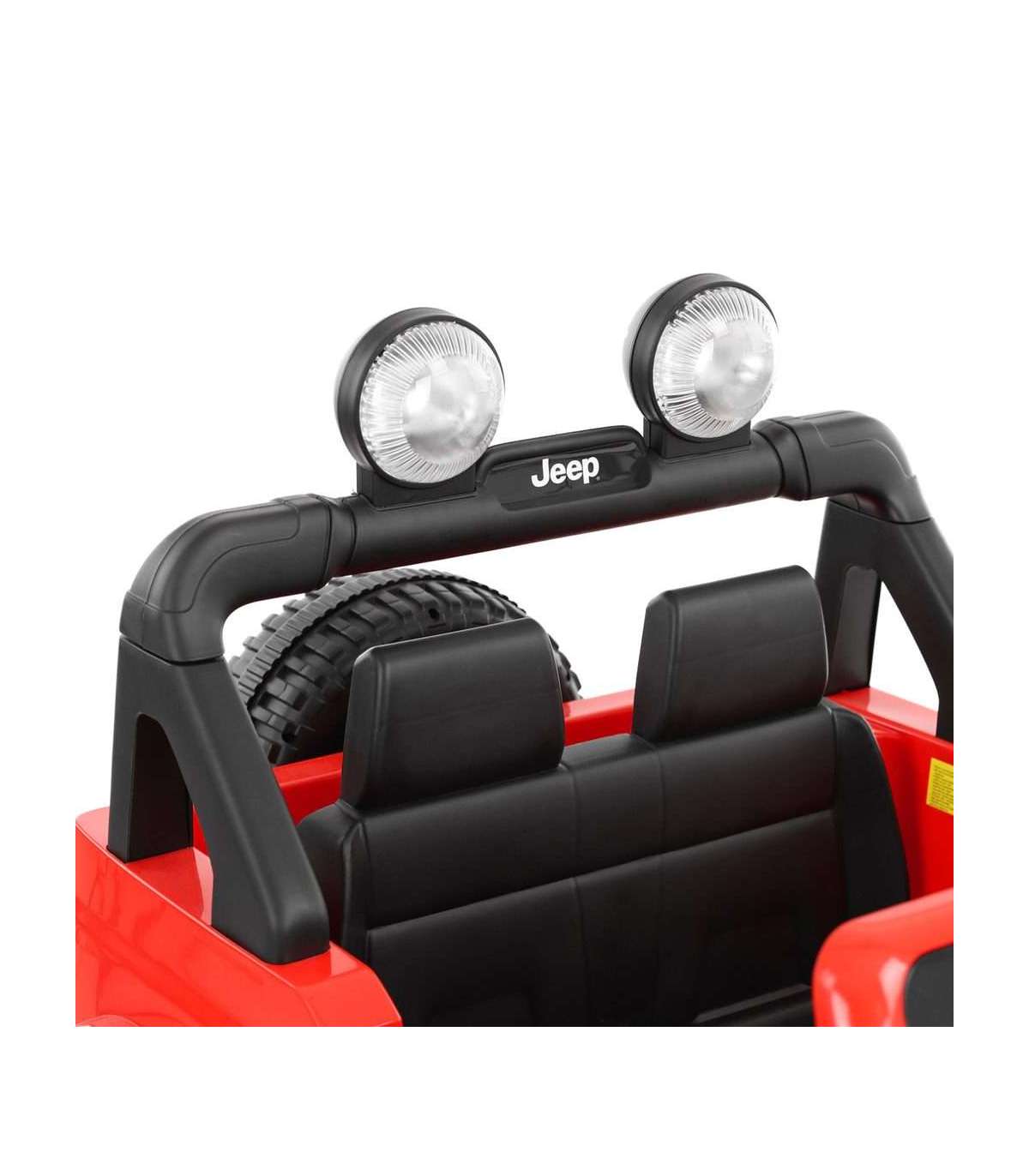 Подходит для детей в возрасте от 3 до 8 лет. Максимум грузоподъемность 35 кг. Аккумулятор 12В / 10Ач. 2 двигателя по 35 Вт, звуковые и световые эффекты, MP3, USB, SD. Изготовлено Jeep Wrangler Rubicon по оригинальной лицензии. Размеры: 126 х 70 х 80 см.