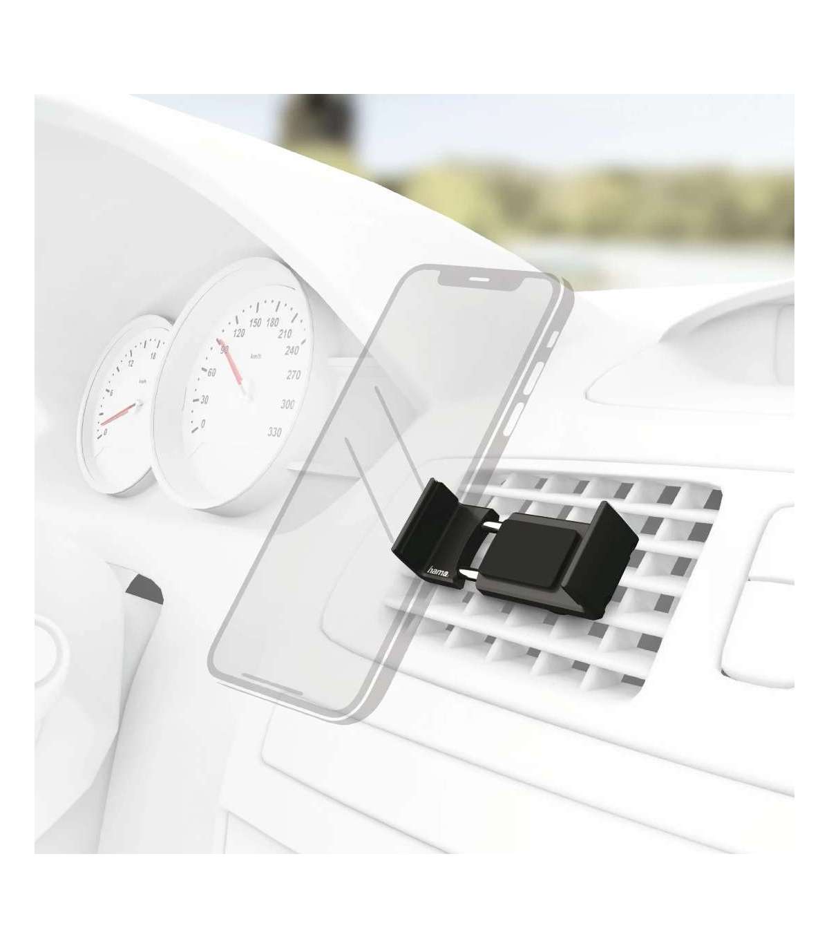 Käepideme hoidik on ventilatsioonipaneelidel 360° pööratav ja sobib ideaalselt telefoni portree- või horisontaalrežiimis positsioneerimiseks
