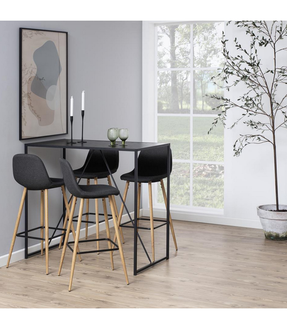 Барный стол SEAFORD 120x60xH105см, столешница: меламин, цвет: серый, рама: чёрный металл