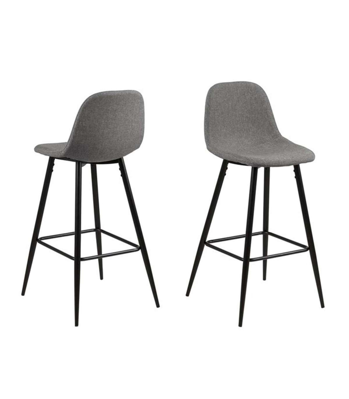 Барные стулья 2шт. WILMA 46,6x51xH101см, сиденье и спинка: ткань, цвет: светло-серый, ножки: чёрный металл