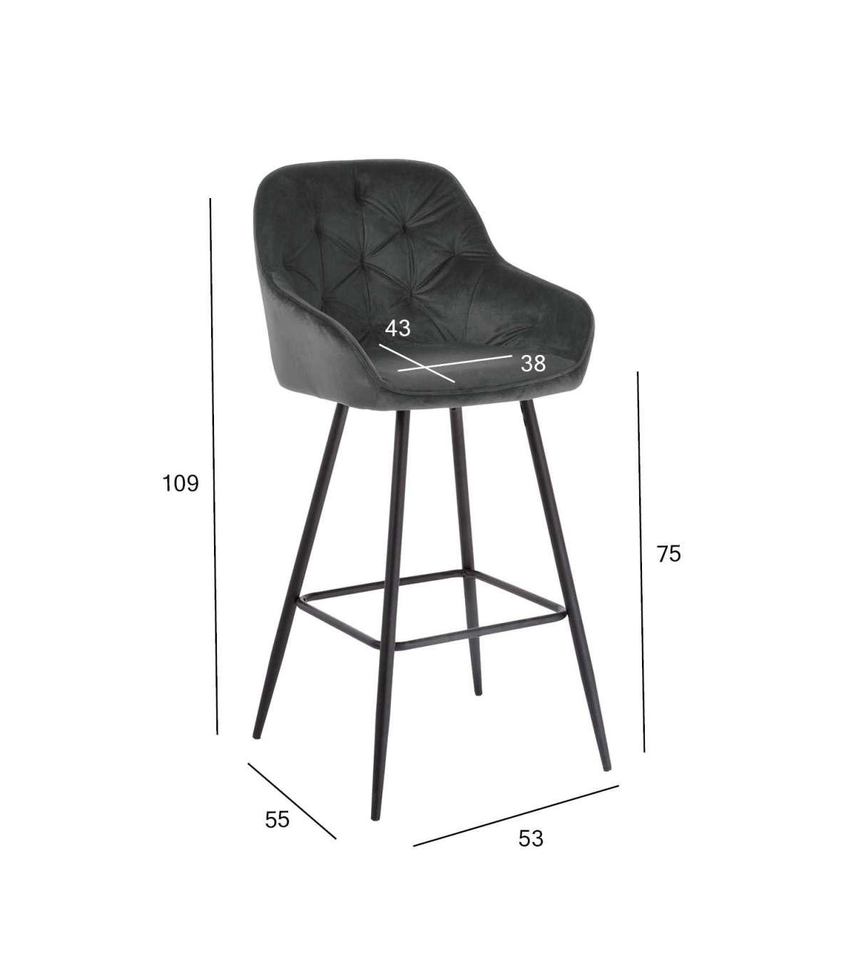 Барный стул BRITA, серый бархат. Гнутое сиденье из фанеры слегка обшито и покрыто бархатной тканью. Материал покрытия: 100% полиэстер, 260g/m?. Martindale 25 000. Металлические ножки с порошковым покрытием черного цвета. Размеры кресла 55x53xH107см, высота сиденья 75см. Максимальный вес 120кг.