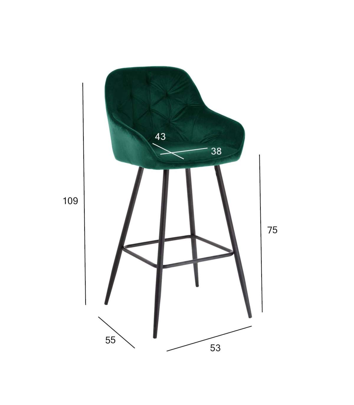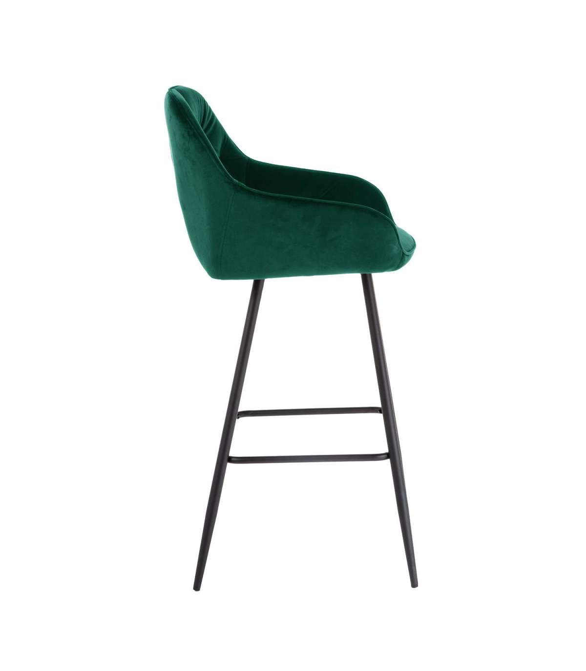 Барный стул BRITA, зеленый бархат. Гнутое сиденье из фанеры слегка обшито и покрыто бархатной тканью. Материал покрытия: 100% полиэстер, 260g/m?. Martindale 25 000. Металлические ножки с порошковым покрытием черного цвета. Размеры кресла 55x53xH107см, высота сиденья 75см. Максимальный вес 120кг.