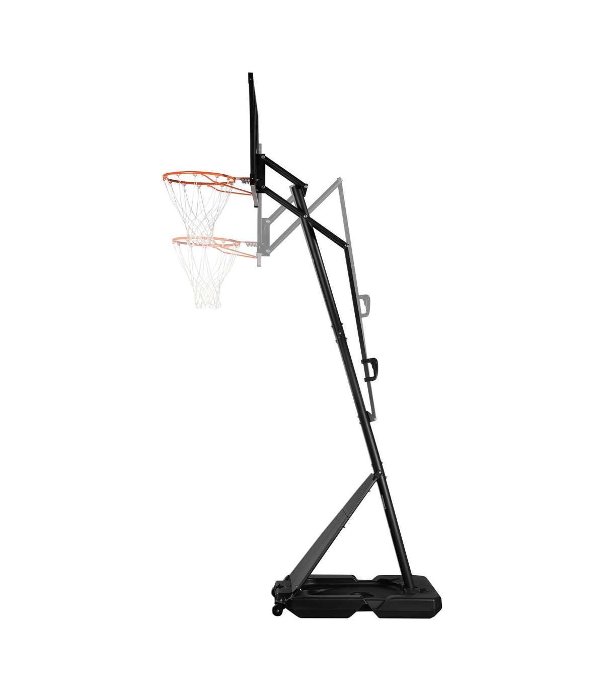 ZDK255 basketball hoop – a versatile set for indoor and outdoor useThe ZDK255 basketball hoop is the perfect choice for all sports enthusiasts – regardless of age and skill level. Thanks to the well-thought-out design and the ability to adjust the height of the hoop, it is suitable for both the youngest players and regular exercisers. Ideal for the garden, driveway, as well as the gym or common room.Height adjustment - play like a pro or have fun with the kidsThe ZDK255 offers smooth height adjustment of the hoop from 1.5 m to 3.05 m. This allows you to adjust the basket to the age and skill level of the users. The lowest setting will be suitable for children learning the basics of basketball, while the maximum height corresponds to a professional level of play. This solution allows the whole family to use the basketball hoop.Durable backboard and professional hoopThe sturdy backboard (108 × 69 cm) is made of damage-resistant PC (polycarbonate) plastic, which is highly durable and UV-resistant. The integrated steel frame reinforces the backboard, protecting it from cracks and deformations.The 18-inch (45-centimetre) diameter rim is made of heavy-duty 16-mm-thick steel, enabling it to withstand intensive use and allowing for safe throwing. The weatherproof nylon net can be used in both summer and winter without the need for dismantling.Stable construction and secure baseThe ZDK255 basket is mounted on a stable, wide base made of damage-resistant PE plastic, which can be filled with water or sand. This guarantees stability during play, even with intensive use. The 66 mm diameter three-part steel pole provides additional rigidity to the entire construction.Thanks to the mobile base and compact design, the basket can be easily moved and adjusted to any space - both outdoors and indoors.Specification:Board dimensions: 108 × 69 cmMaterial of board: durable polycarbonate (PC) on steel frameHeight adjustment range of rim: 1.5 m to 3.05 mDiameter of rim: 45 cmMaterial of rim: steel, diameter 16 mmMaterial of net: weather-resistant nylonMaterial of post: steel, three segments, diameter 66 mmDimensions of base: 110 × 70 cmMaterial of base: PE plasticFilling option for base: water or sandApplication: for indoor and outdoor use, for home and leisure useRemarks:Not for commercial use24 months warrantyImporter: Abisal Ltd. | Poland | 41-807 Zabrze | Pyskowicka Street 17 | e-mail: abisal@abisal.plAbisal Ltd.. declares that the products sold by the company are safe and meet the requirements contained in the Act on General Product Safety of December 12, 2003. (Journal of Laws of December 31, 2003)