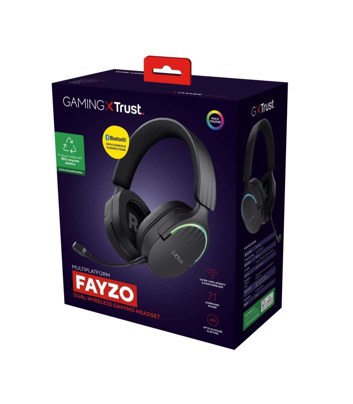 - Trust GXT 491 Fayzo. Product type: Headset. Connectivity technology: Wired & Wireless, Bluetooth. Recommended usage: Gaming. Headphone frequency: 20 - 20000 Hz. Cable length: 1.2 m. Weight: 290 g. Product colour: Black