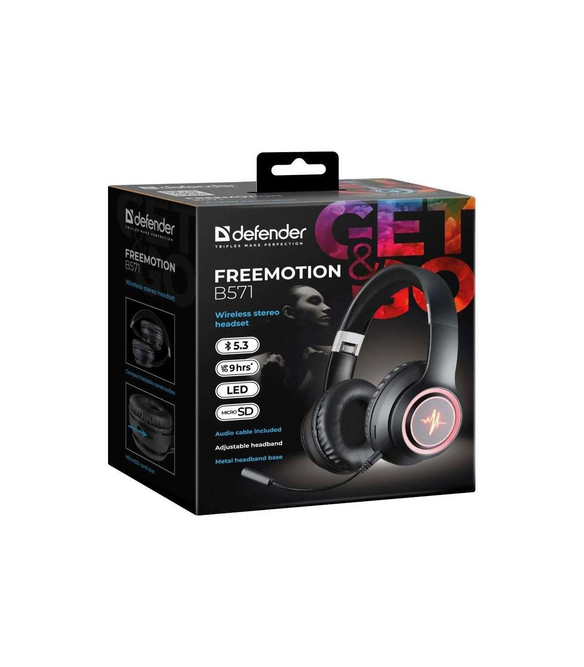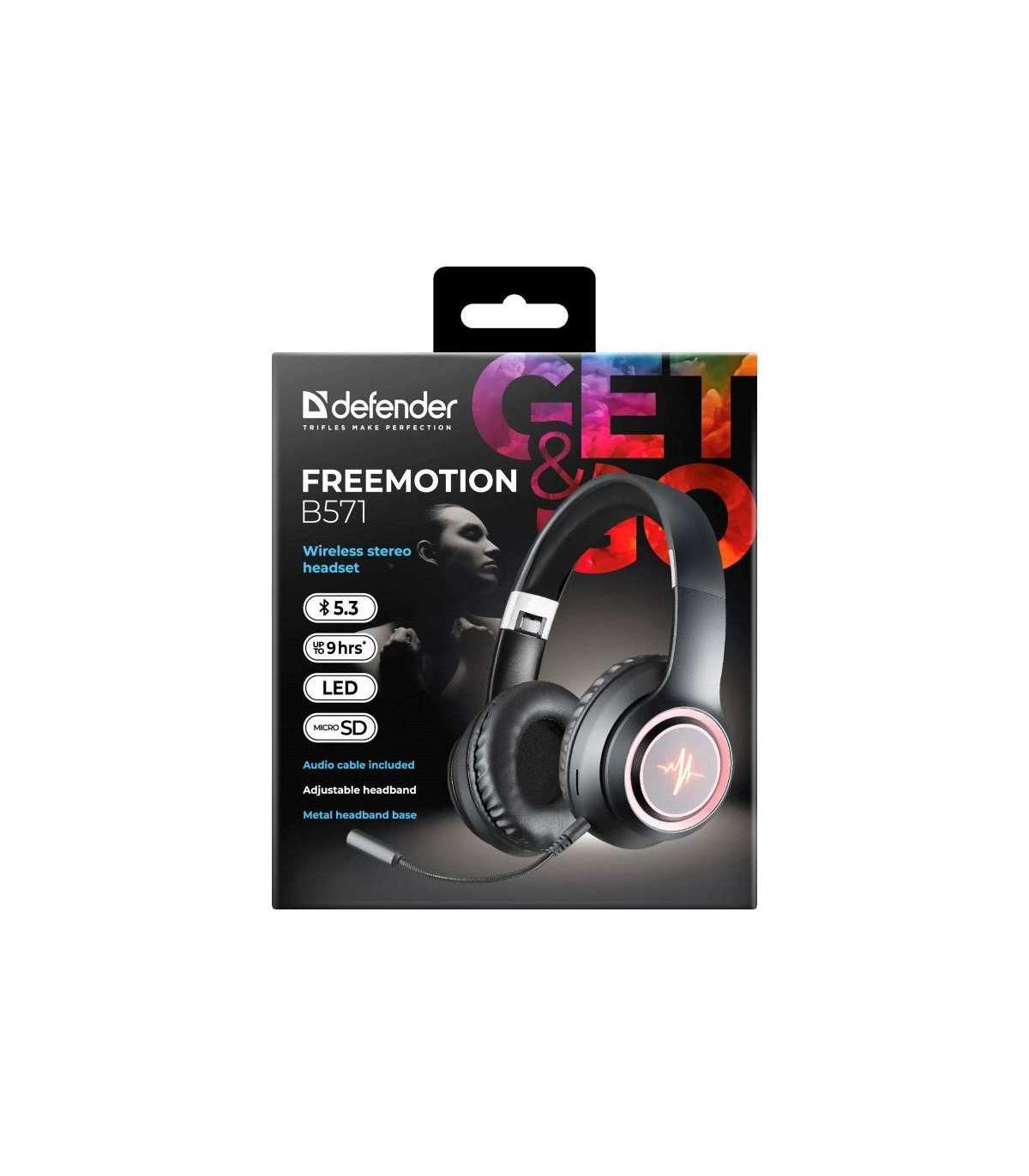 HEADPHONES DEFENDER BLUETOOTH FREEMOTION B571 BLACK LED