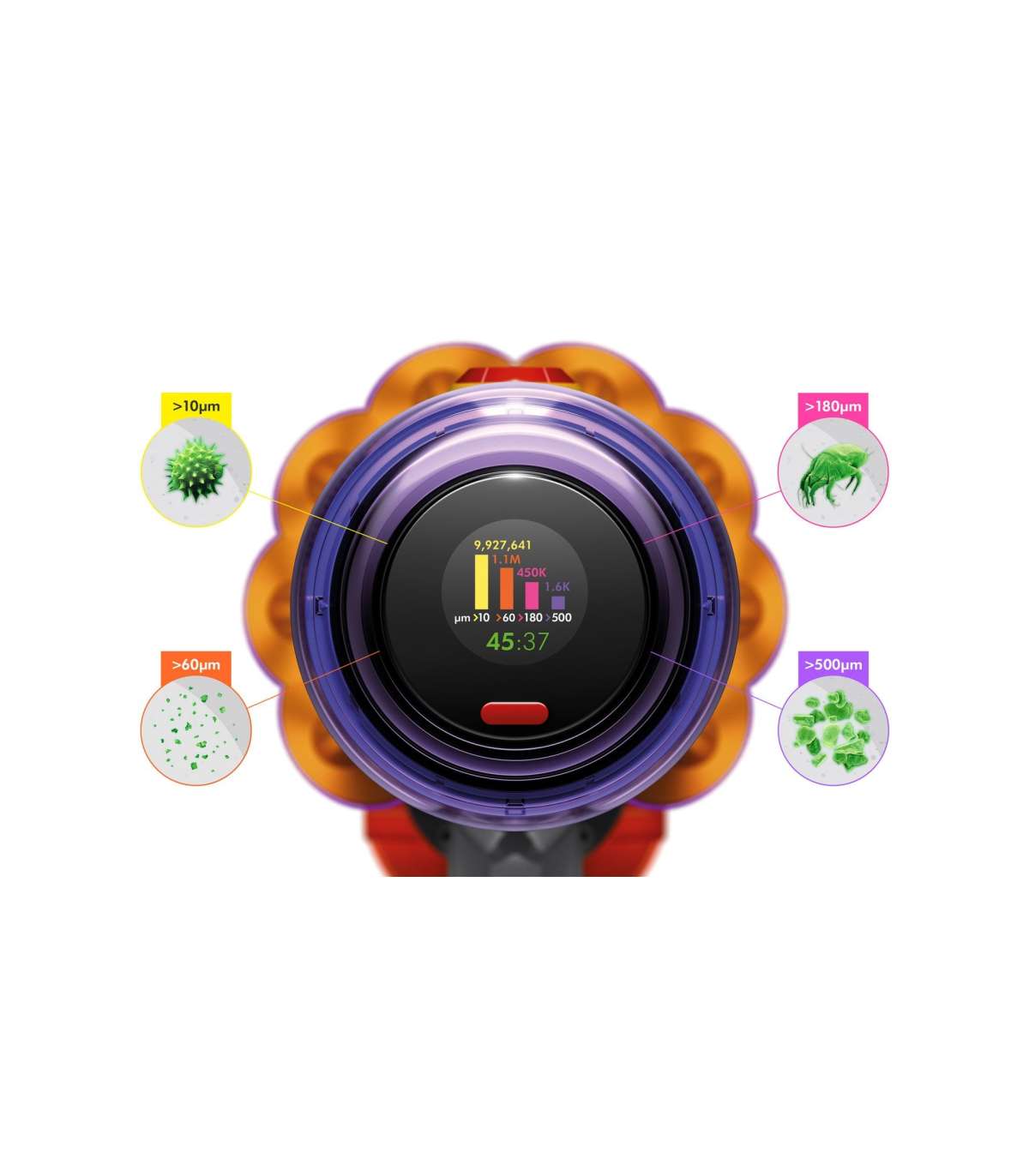 Мотор Hyperdymium™: Dyson V12 Detect Slim Absolute похвастается передовым мотором Hyperdymium™, который создает мощное всасывание, чтобы легко захватывать даже самые мельчайшие частицы. Никаких проблем с животными волосами или мелкой пылью.