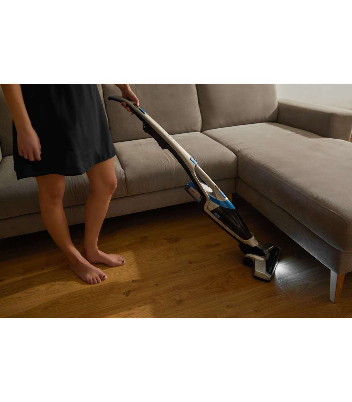 Excellent control and easy maneuverability around furniture thanks to a 180° radius swivel vacuum nozzle and the low weight of the vacuum cleaner.