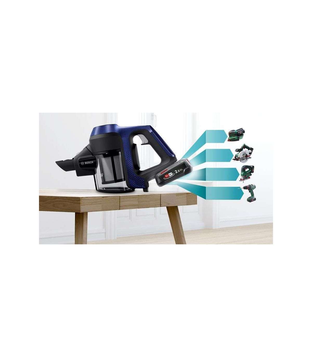 Bosch Serie 6 BBS611MAT stick vacuum/electric broom 2-in-1 stick vacuum Battery Dry Bagless 0.3 L Blue 2.5 Ah