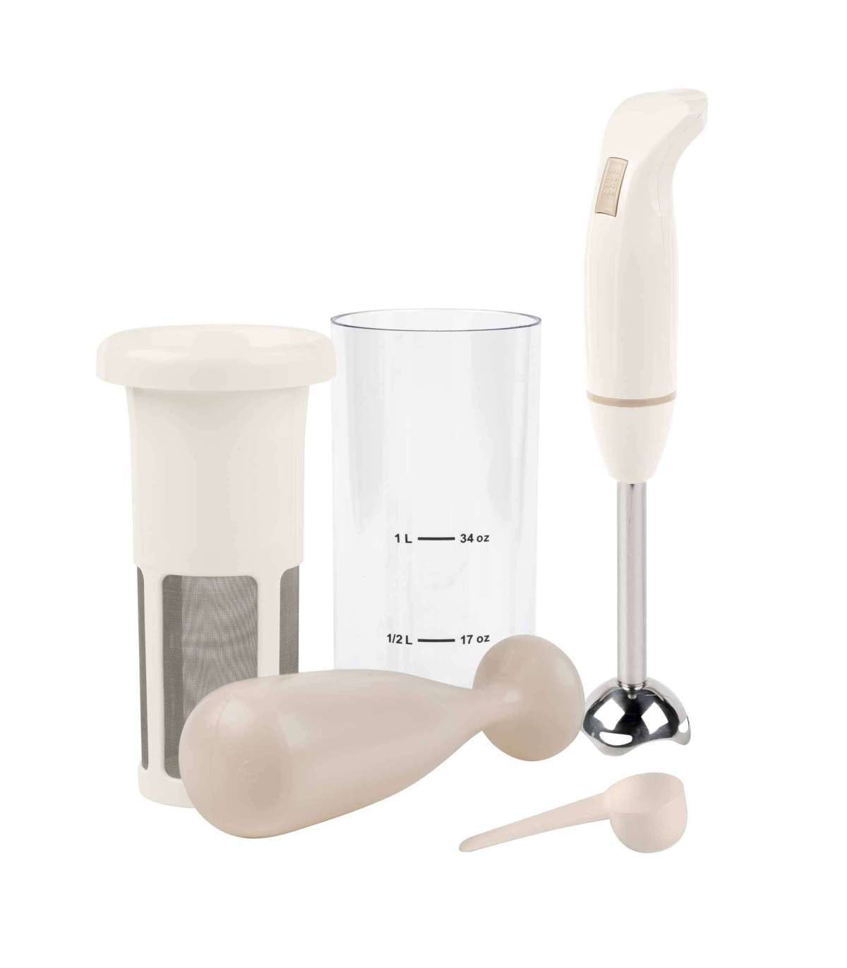 400 W saumikser ergonoomilise käepidemega, eemaldatava varda ja väga tugevate roostevabast terasest labadega