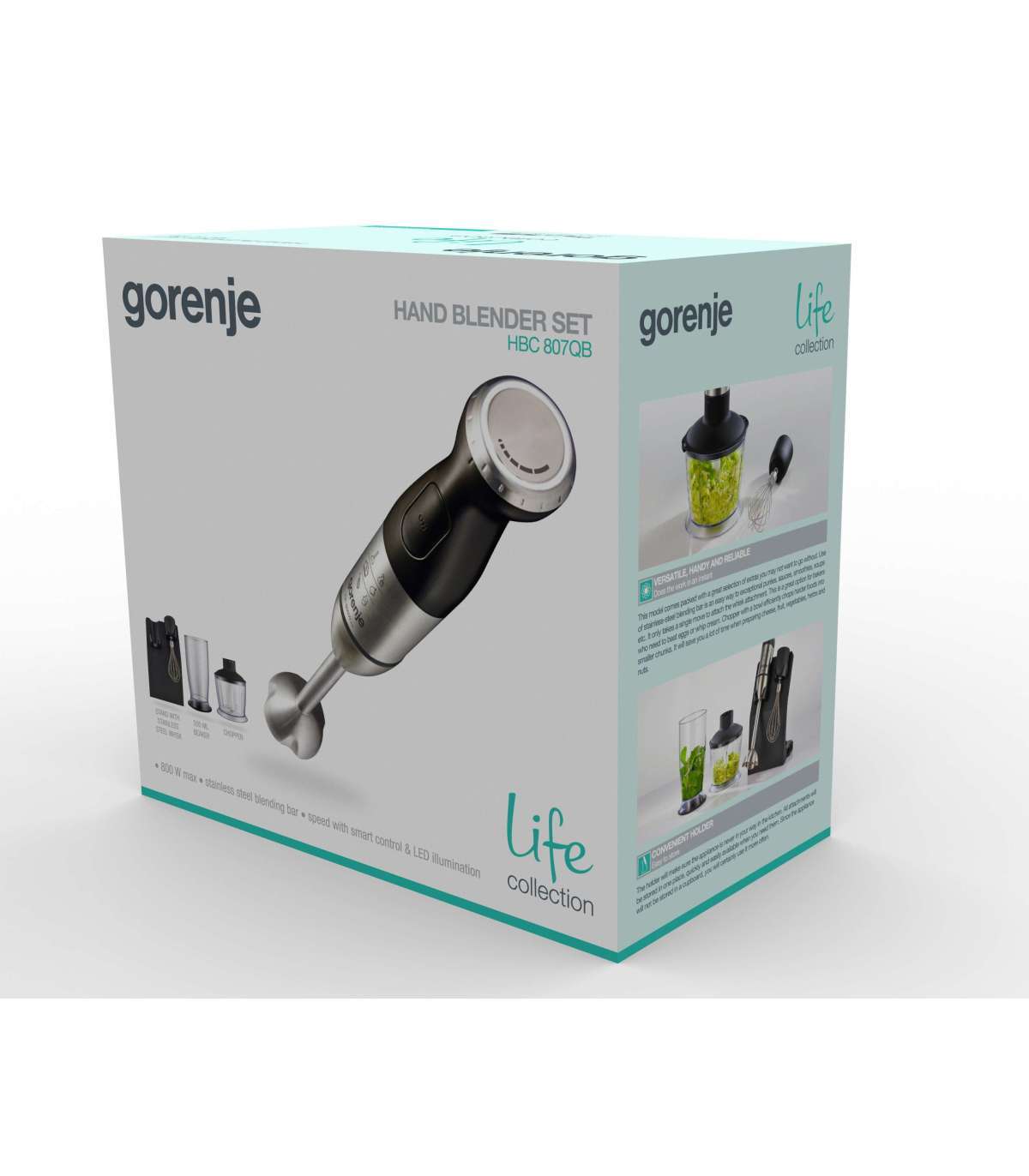 Gorenje | Blender | HBC807QB | Hand Blender | 800 W | Jar material Plastic | Jar capacity 0.5 L | Chopper | Black