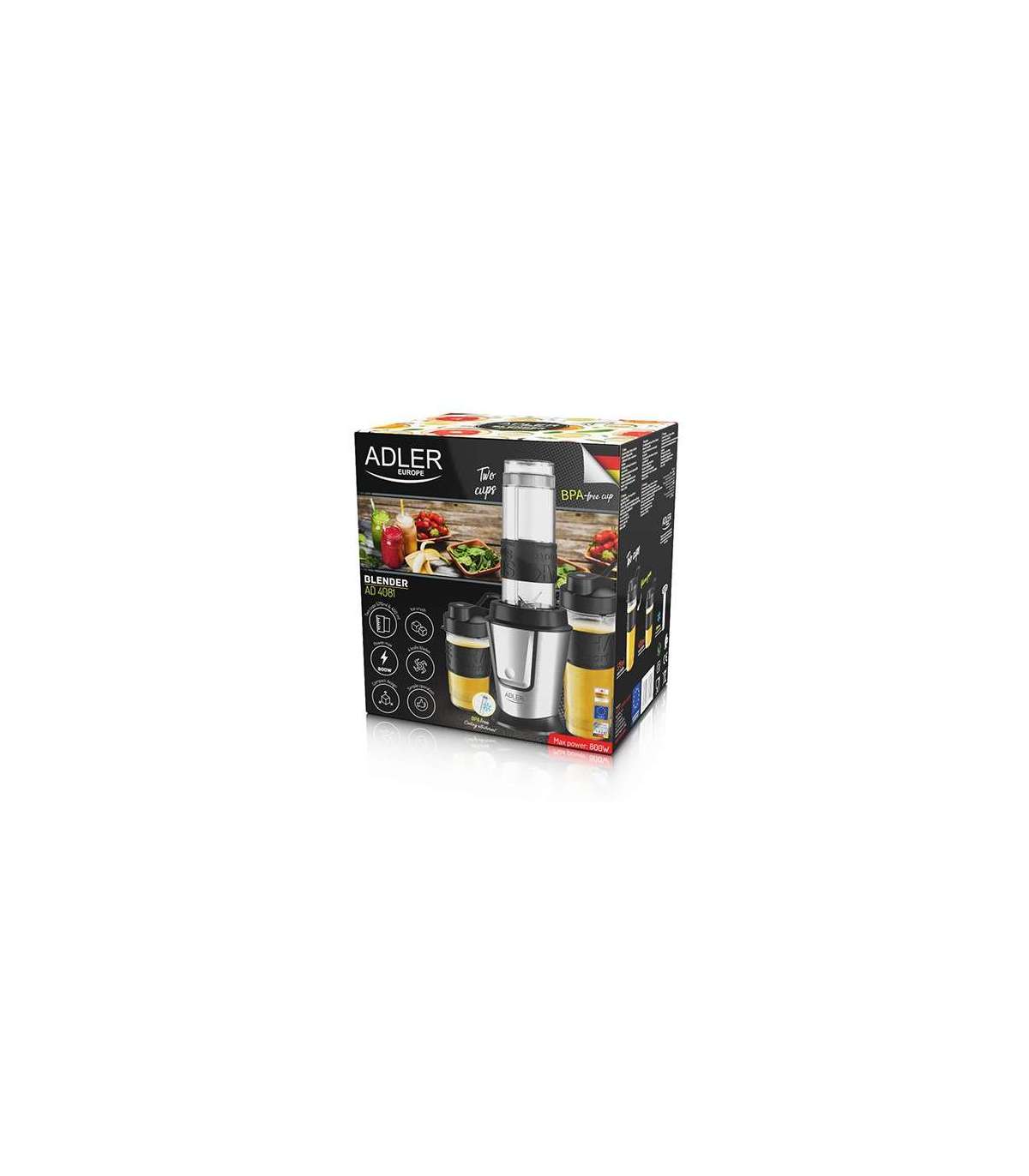 Adler | Blender | AD 4081 | Tabletop | 800 W | Jar material BPA Free Plastic | Jar capacity 0.4 + 0.57 L | Ice crushing | Black/Stainless steel