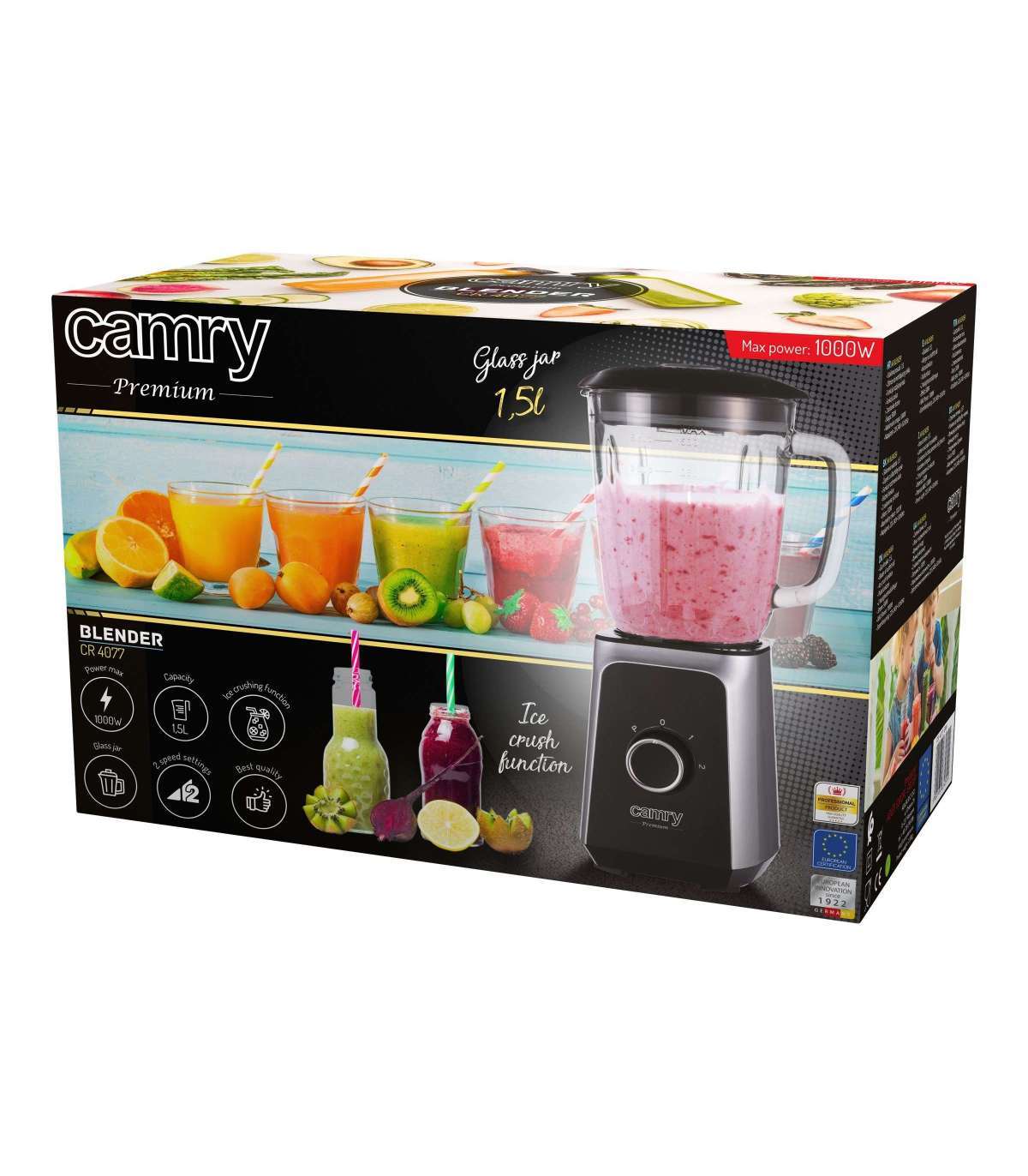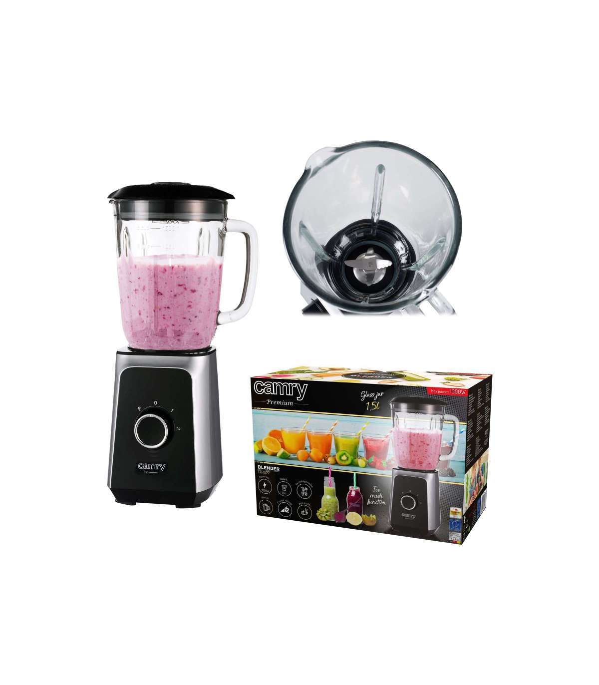 Camry | Blender | CR 4077 | Tabletop | 500 W | Jar material Glass | Jar capacity 1.5 L | Ice crushing | Black/Stainless steel