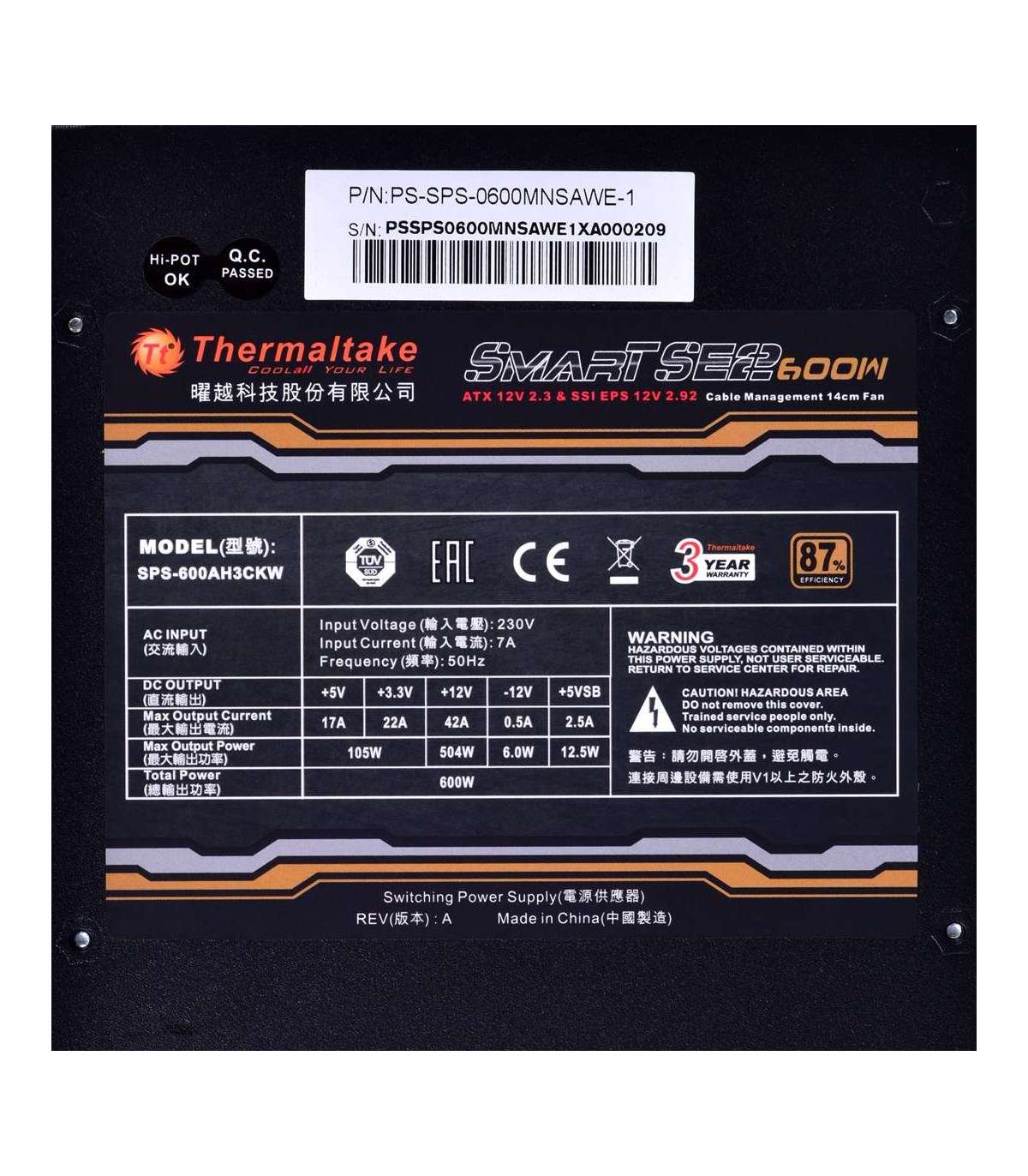 Thermaltake Smart SE2 600W power supply unit ATX Black