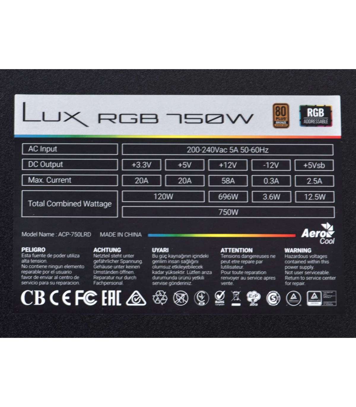 Aerocool Lux RGB 750W power supply unit Black
