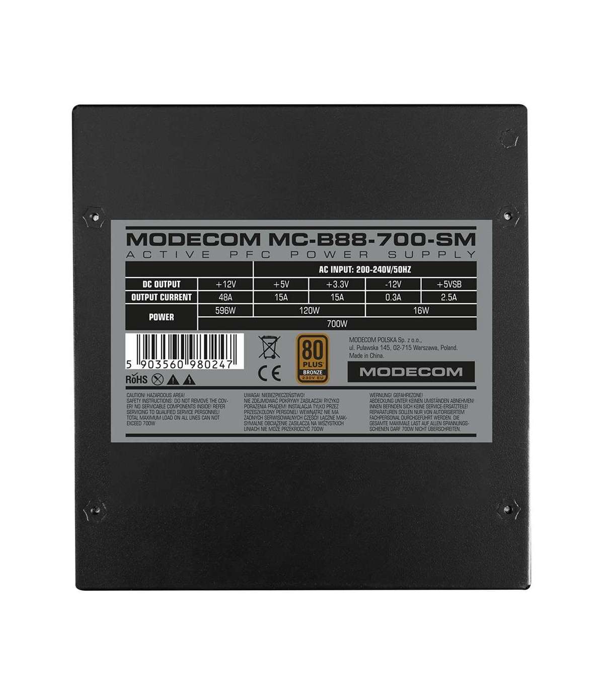 MODECOM Power Supply MC-B88-700-SM 80+ BRONZE 230V EU 700W