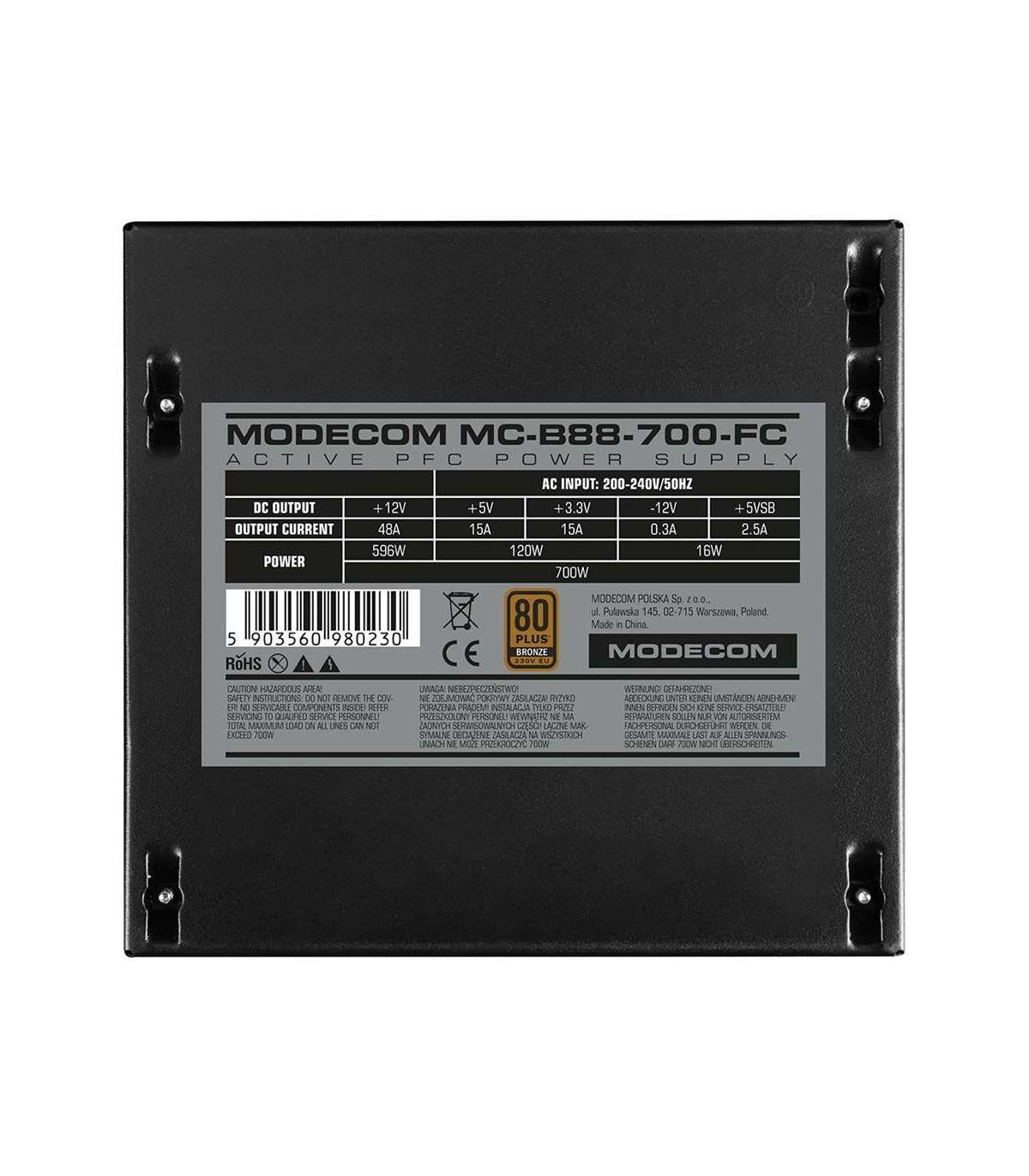 MODECOM Power Supply MC-B88-700-FC 80+ BRONZE 230V EU 700W BULK