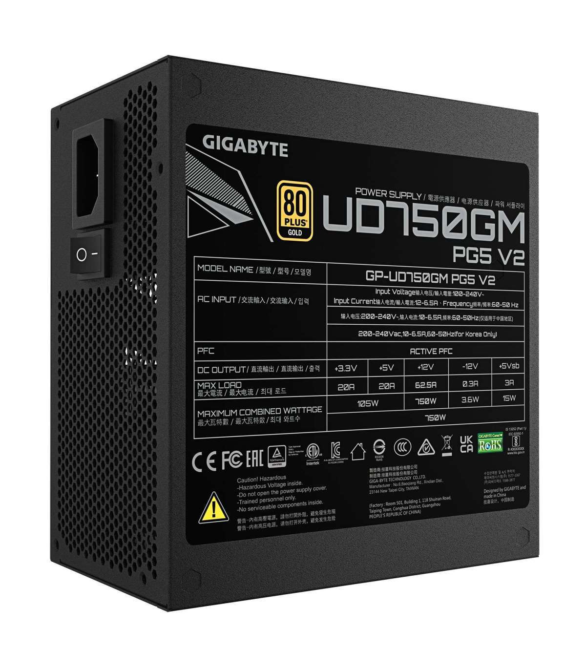 Power Supply|GIGABYTE|UD750GM PG5 V2|ATX 3.1|750 Watts|Efficiency 80 PLUS GOLD|PFC Active|MTBF 100000 hours|GP-UD750GMPG5V2