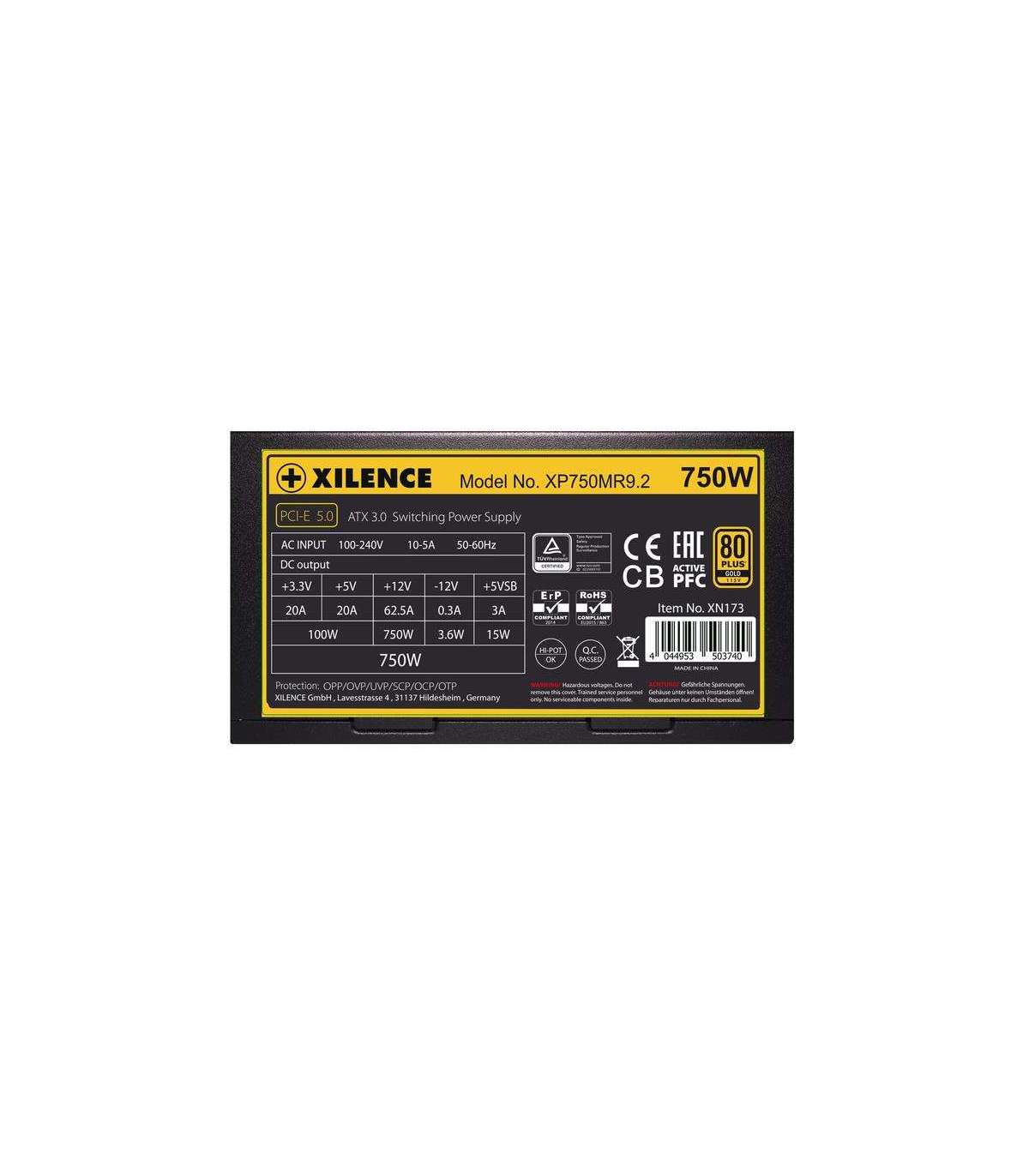 Power Supply|XILENCE|750 Watts|Efficiency 80 PLUS GOLD|PFC Active|XN173