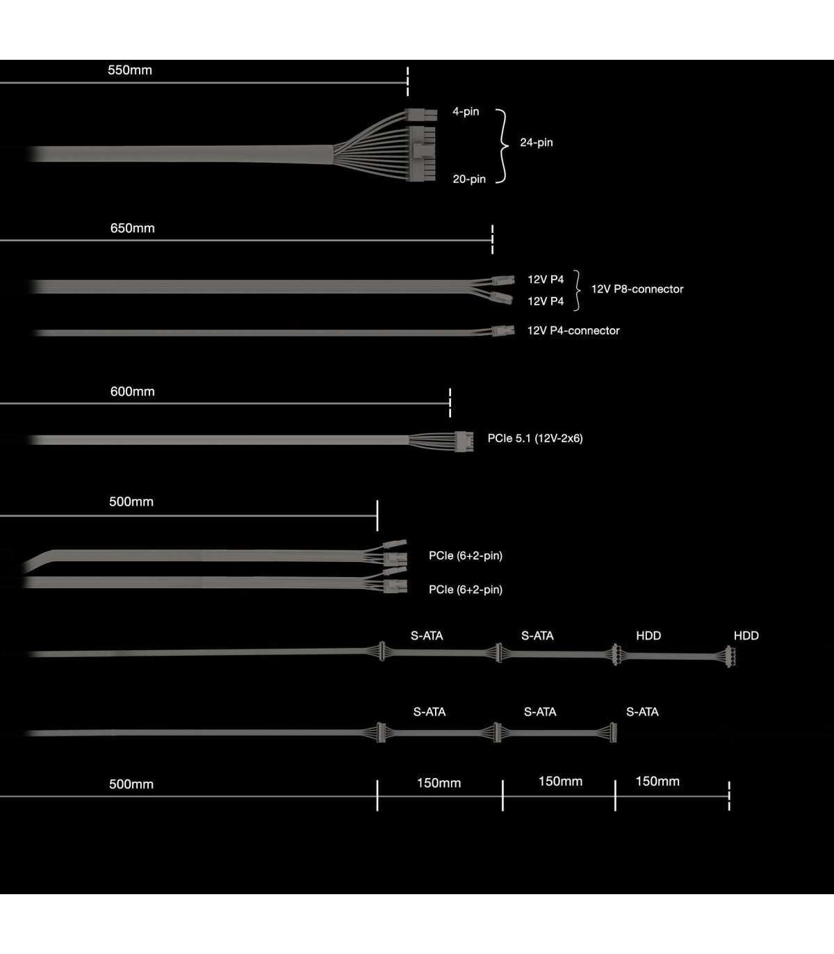 - ATX 3.1 PSU with full support for PCIe 5.1 GPUs and GPUs with 6+2 pin connectors