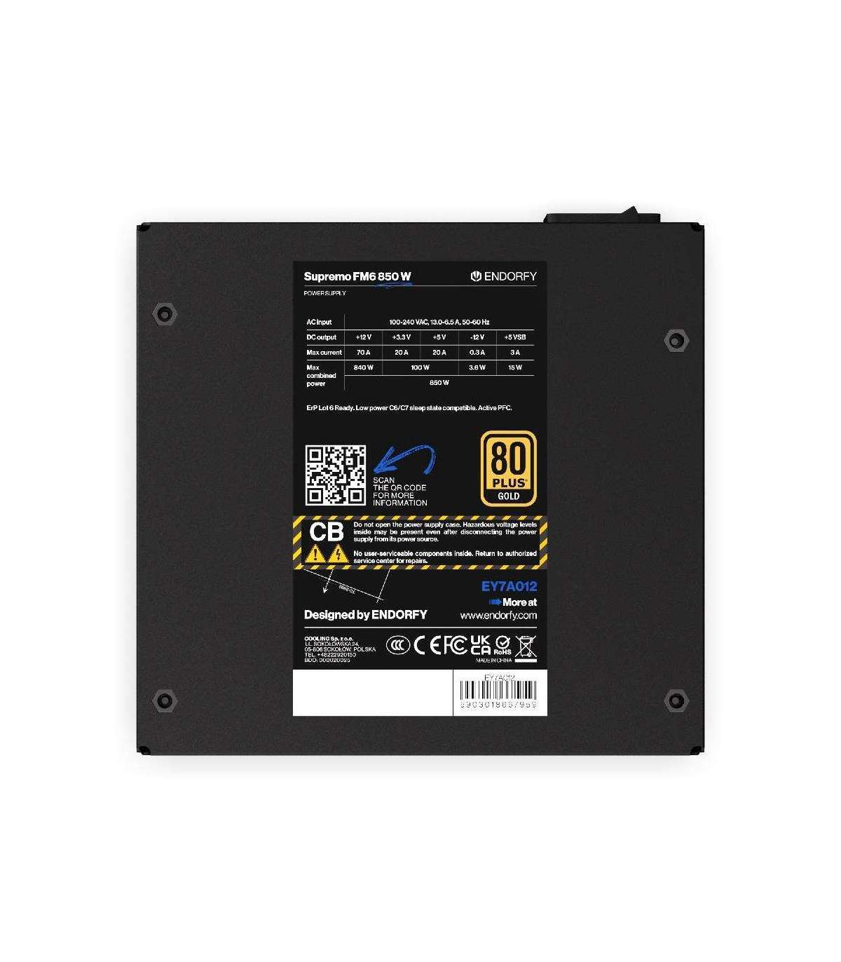 Power Supply|ENDORFY|SUPREMO FM6|850 Watts|Efficiency 80 PLUS GOLD|MTBF 100000 hours|EY7A012