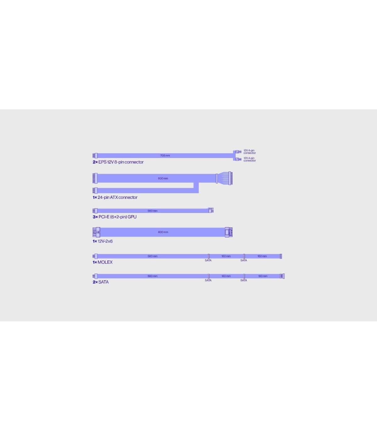 The 80 PLUS® Gold certificate confirms the high efficiency of the Supremo FM6 850 W power supply unit. Thanks to its excellent quality and refined design, the unit is characterized by low-noise and low-temperature operation, resulting in its extended service life.