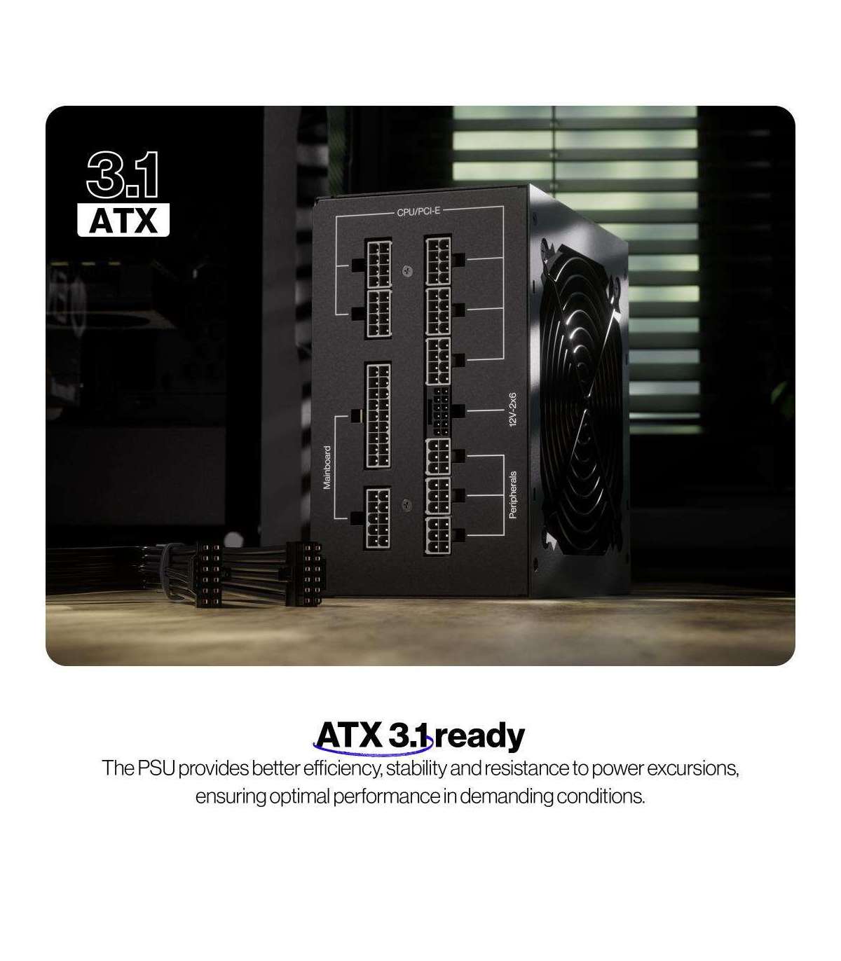 Supremo FM6 850 W is a power supply unit compliant with the ATX 3.1 standard. Its major advantages include even better performance, stability, and resistance to momentary power spikes than previous ATX standards. The set includes the 12V-2x6 cable fully compatible with PCIe 5.1 cards. A traditional PCI-E 6+2 PIN splitter is also included to handle GPUs with classic power supply systems.