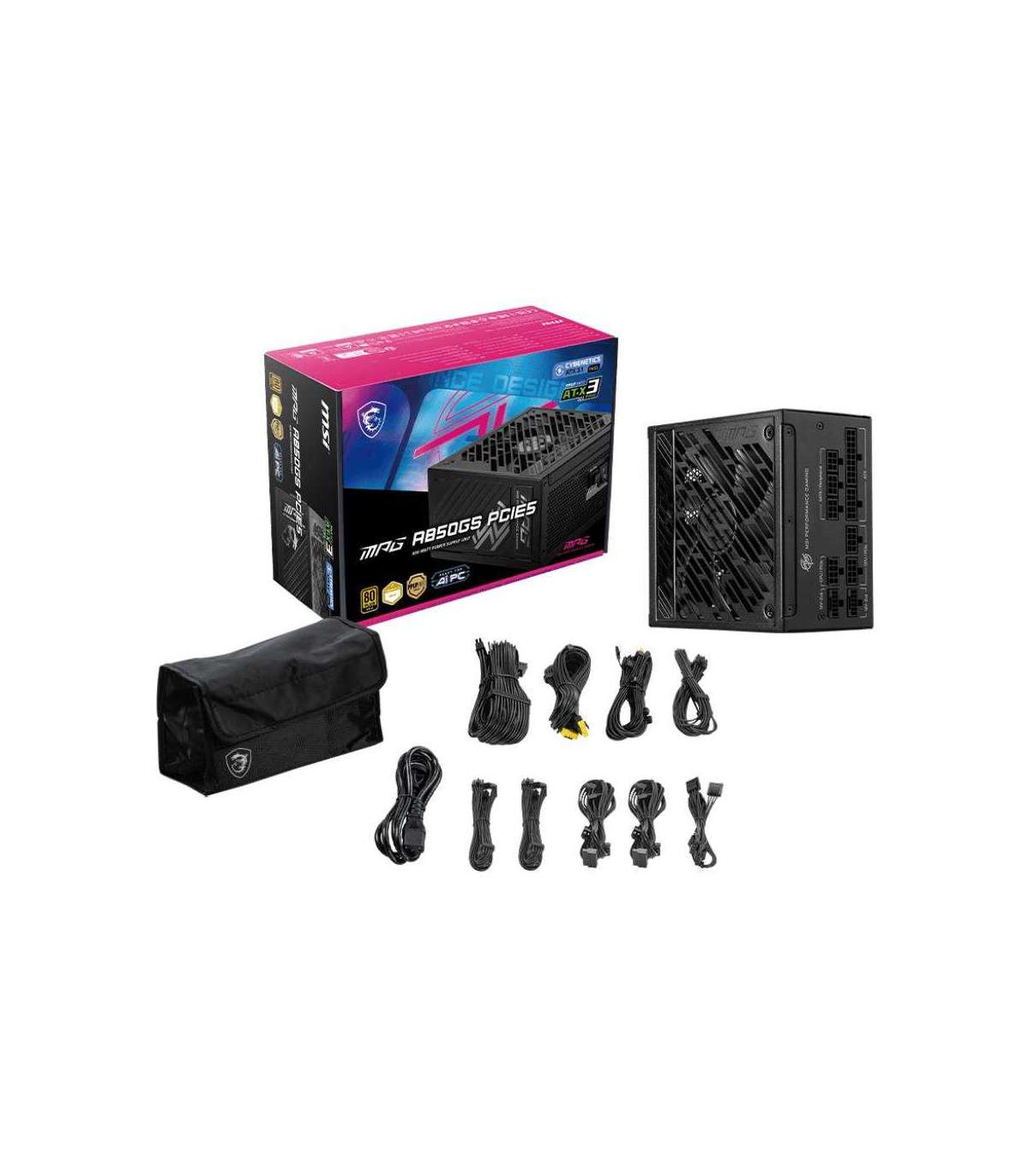 Power Supply|MSI|MPG A850GS PCIE5|ATX 3.1|850 Watts|Efficiency 80 PLUS GOLD|PFC Active|MPGA850GSPCIE5