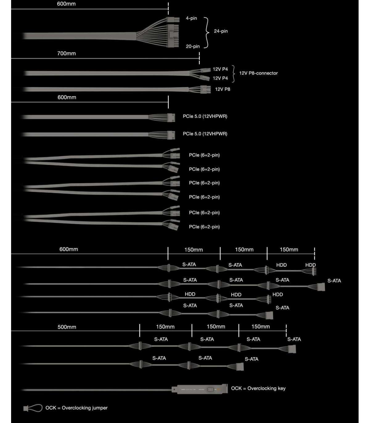 - 2 PCIe 5.0 12VHPWR 600W and 6 PCIe 6+2 connectors for overclocked high-end GPUs