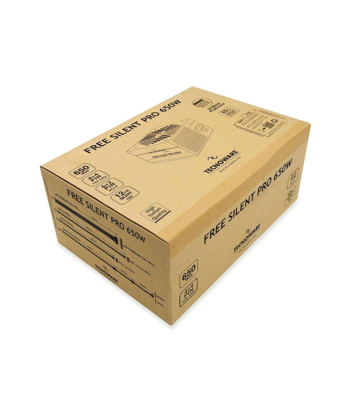 Internal power supply for personal computer, power 650W, input voltage 230 Vac, 50/60 Hz, conforms to ATX 12V v.2.31 specifications, main switch, surge protection, overload protection, short circuit protection, high MTBF, high reliability, quiet operation, 12 cm silent fan, temperature control of fan speed, Flat type connection cables from 500mm to 800mm, 1 x 20+4-pin connector, 1 x 12V 4+4-pin connector, 1 x 6+2 PCI-E connector, 2 x Molex connectors, 4 x Sata connector, dimensions 150x140x86 mm, weight 1.0 Kg, black color, CE certification, RoHS.