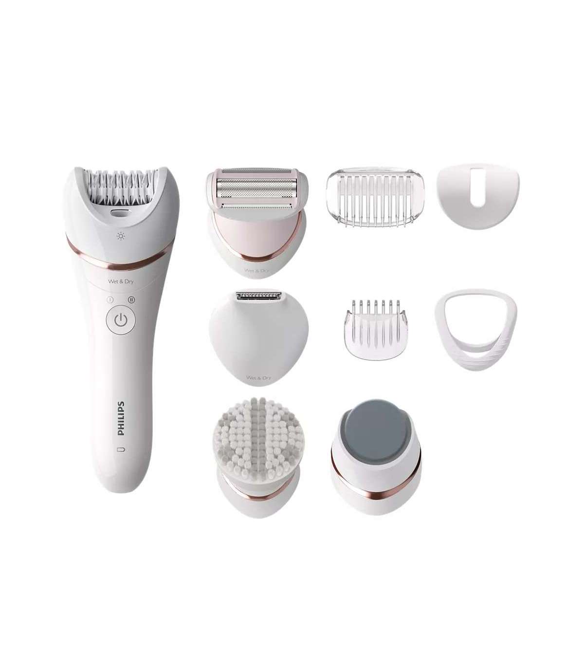 Shaving head; Shearing comb; Bikini head; Bikini area trimming comb; Body scrub brush; Pedicure foot scrub; Nozzle for sensitive areas; Optimal contact tip; Regular shopping cart; Cleaning brush.