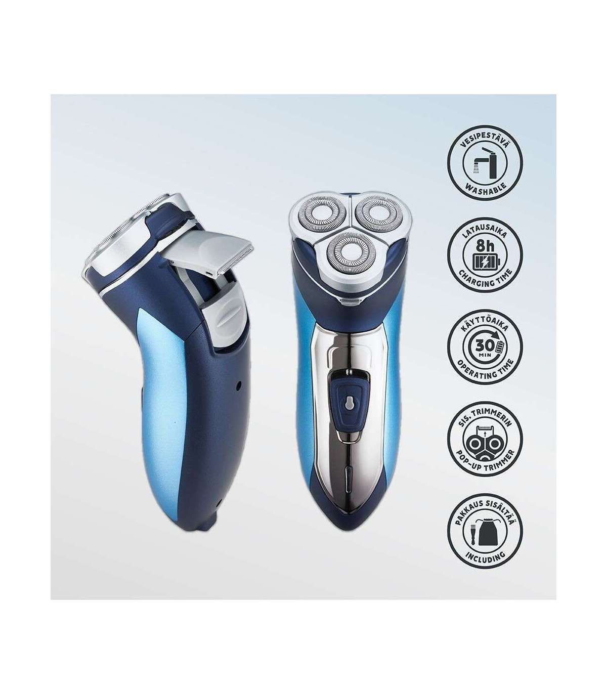 The shaver has 3 double-fixed, independent rotating parts that ensure the desired result.