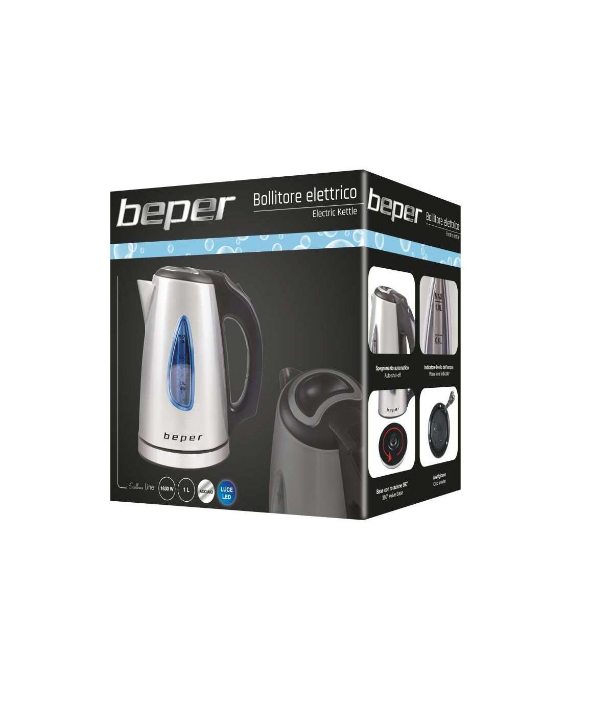 1 L terasest veekeetja võimaldab teil valmistada kuni 4 tassi teed või muid kuumaid jooke. Filter on eemaldatav ja sisaldab veetaseme indikaatorit. See on varustatud kaitsega ülekuumenemise eest. Varjatud küttekeha, sinine töövalgusti ja 360 ° pöörlev alus, millel on nöörlõng.