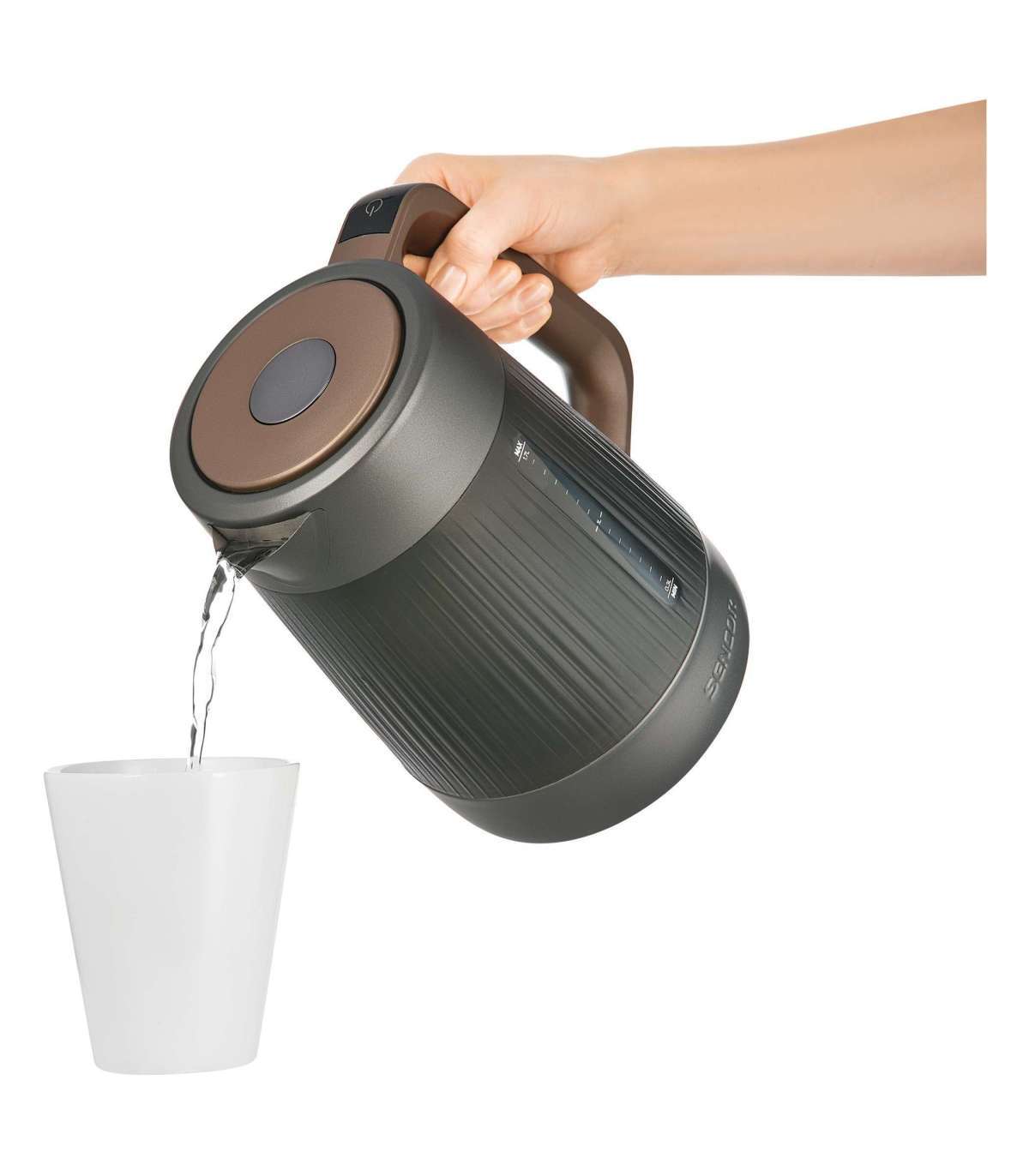 Sencor SWK0930WH kettle with a double-walled body and a futuristic look.