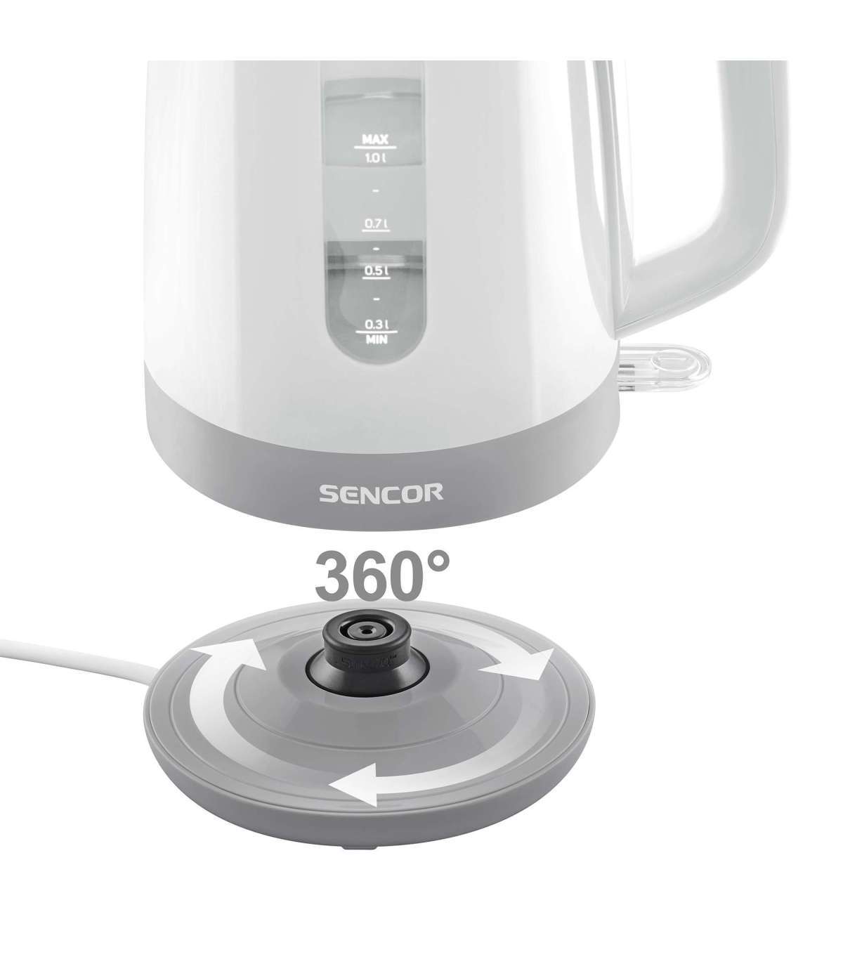 Preparing hot drinks in the colourful design kettle from Sencor SWK 102xxx is quick and easy. The kettle is made of BPA-free plastic. It features a high-quality Strix centre plug with three safety features and an automatic shut-off function. A light in the switch informs you when the kettle is switched on. The hidden heating element with stainless steel surface at 2,200 W ensures fast preparation and time saving.