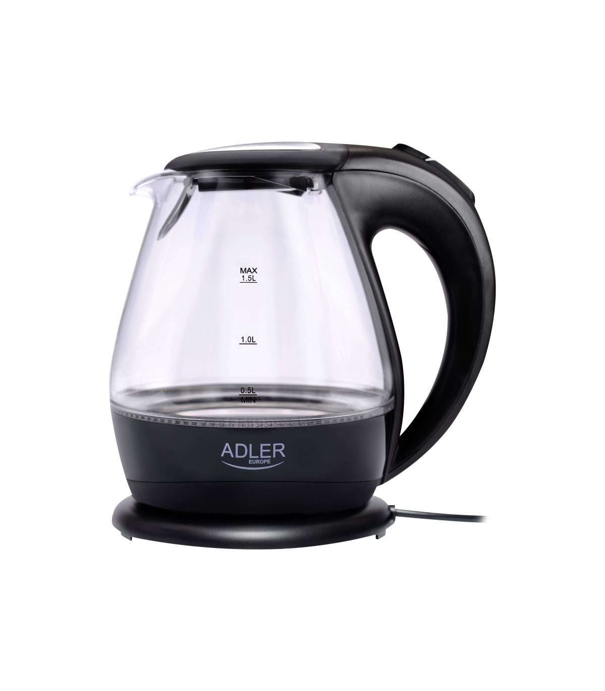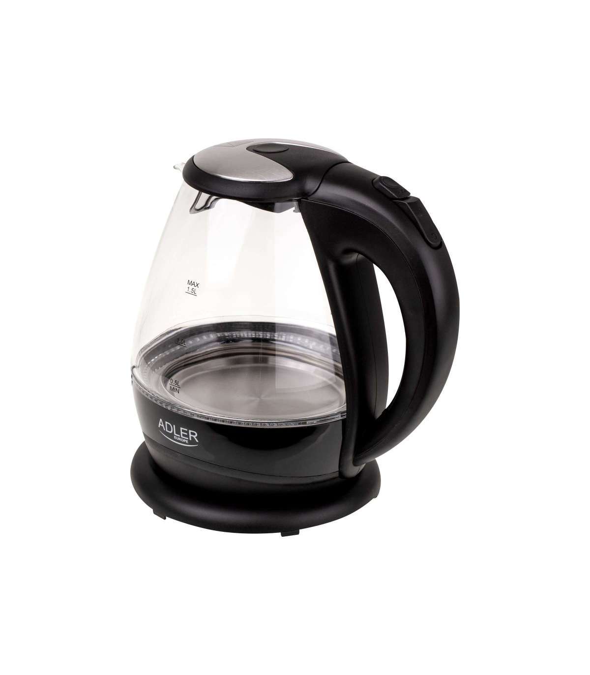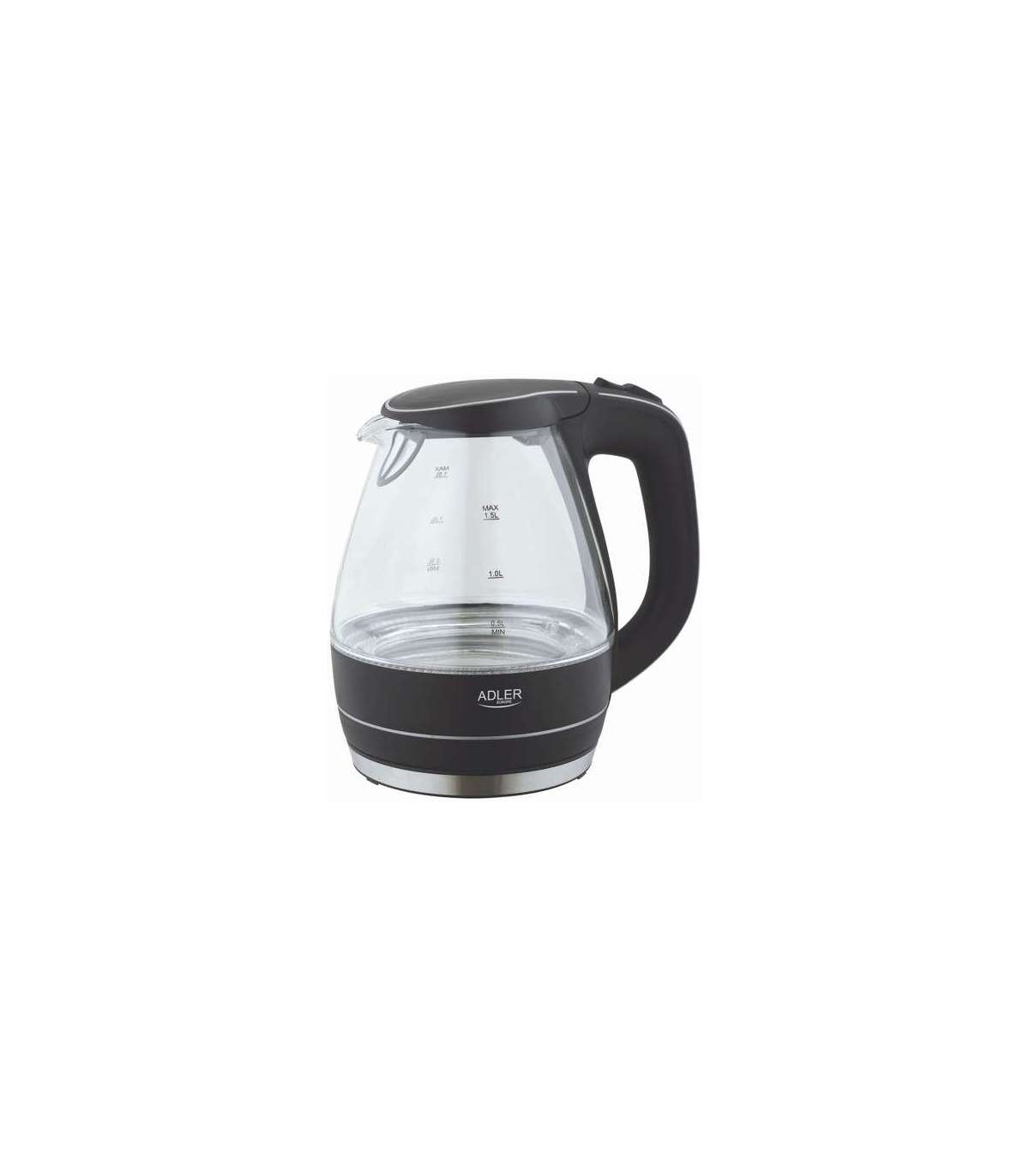 Kettle | Adler | Kettle | AD 1224 | Standard | 2000 W | 1.5 L | Glass | 360° rotational base | Black