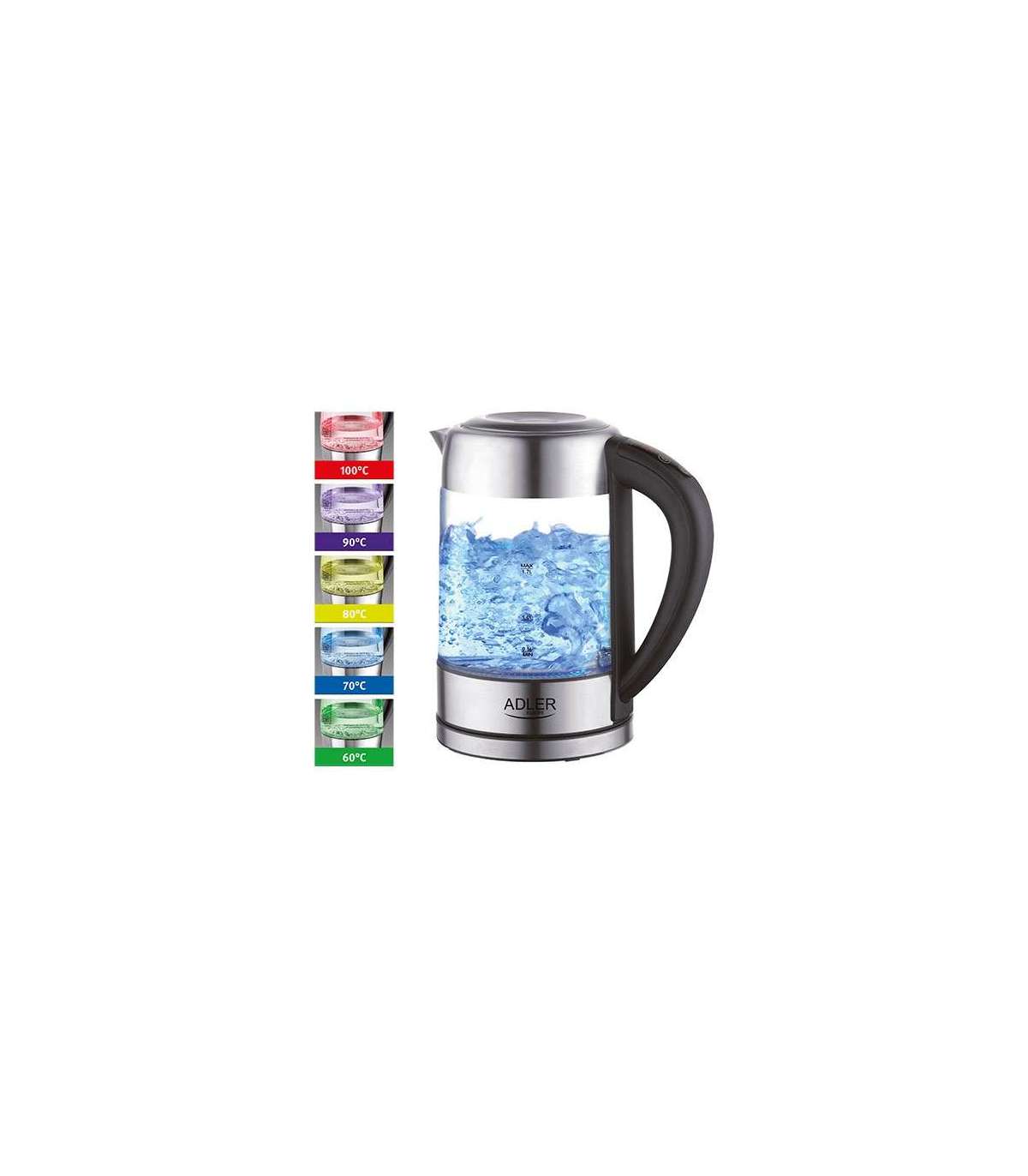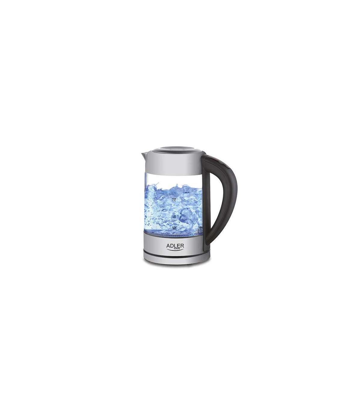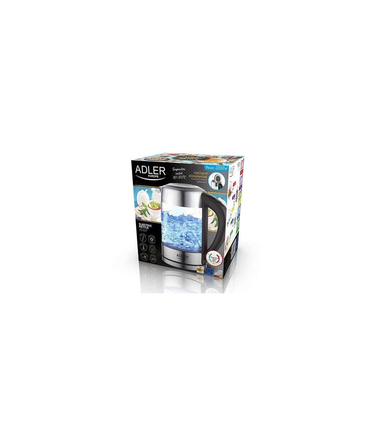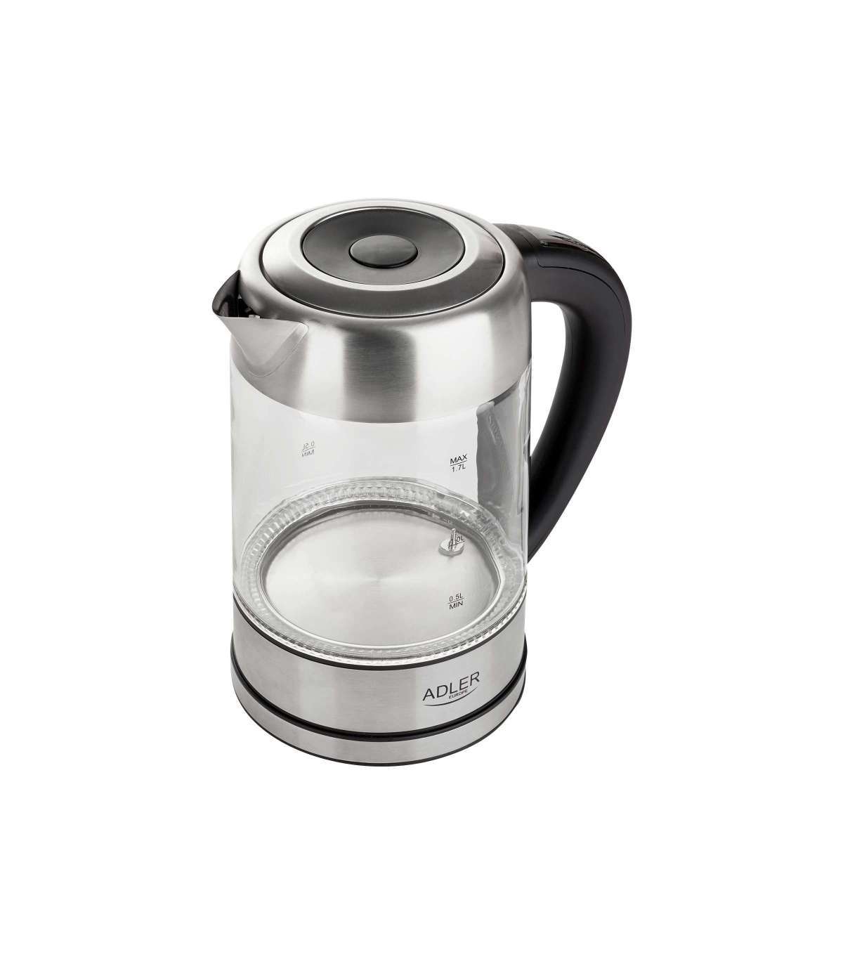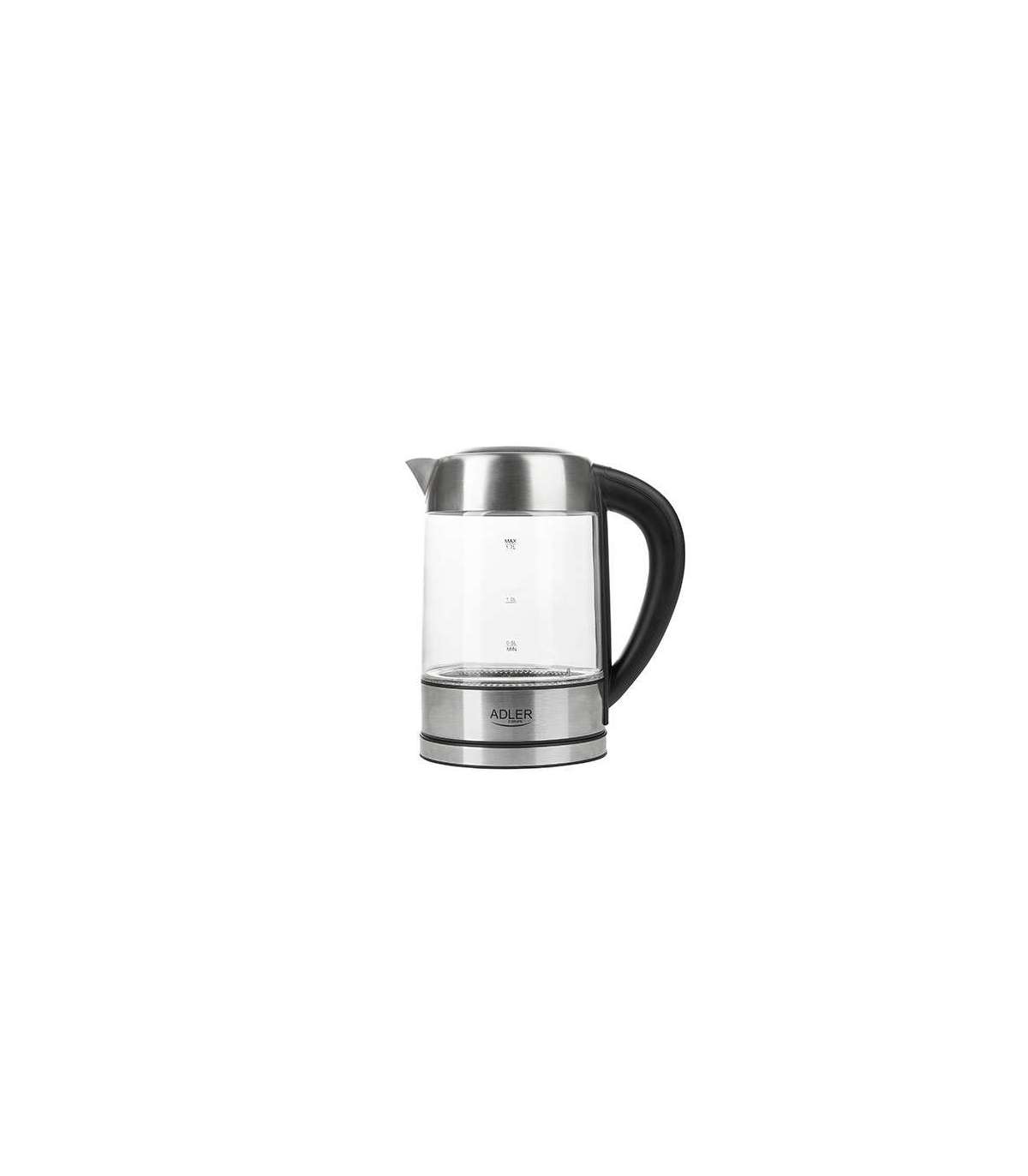 Adler | Kettle | AD 1247 NEW | With electronic control | 1850 - 2200 W | 1.7 L | Stainless steel, glass | 360° rotational base | Stainless steel/Transparent