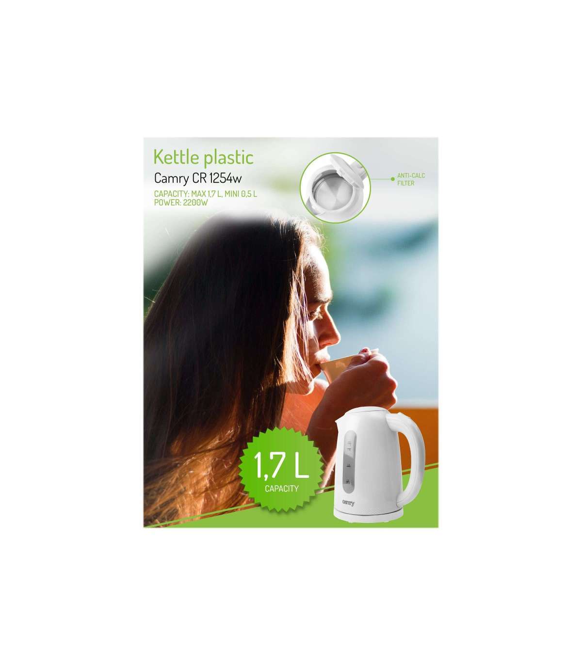 Camry Kettle CR 1254 Standard 2200 W 1.7 L Plastic 360° rotational base White