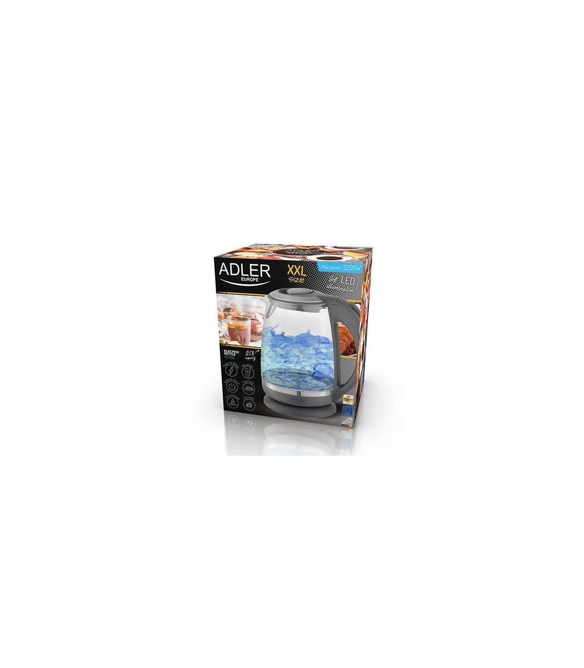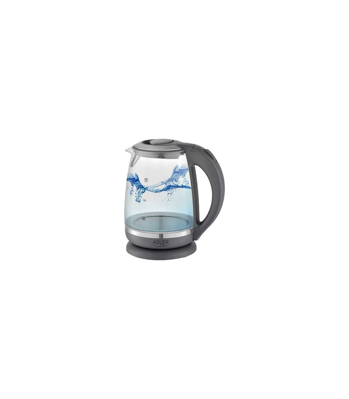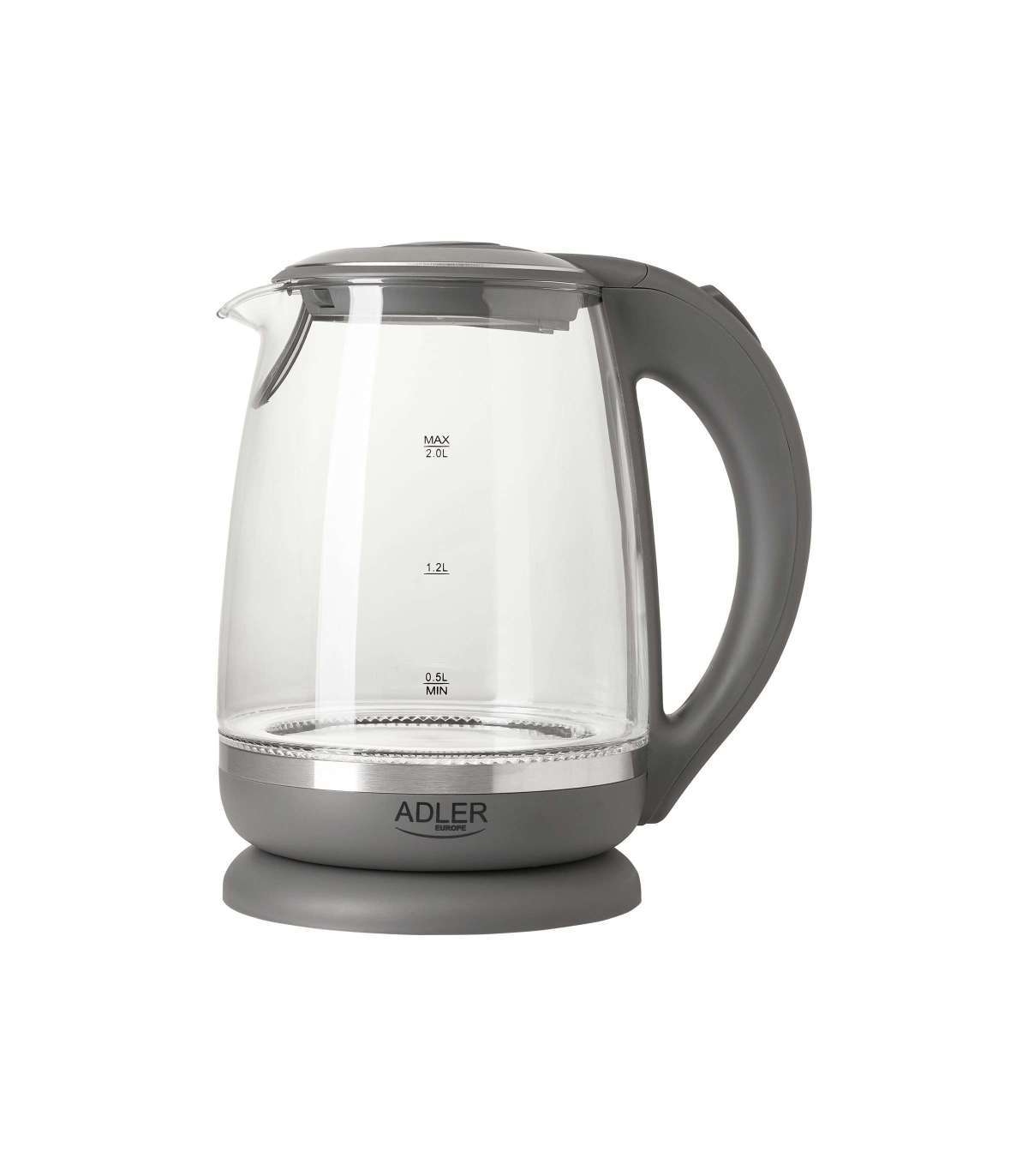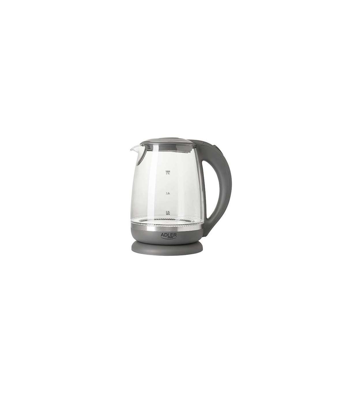 Adler Kettle AD 1286 Standard 2200 W 2 L Plastic/Glass 360° rotational base Grey/ transparent