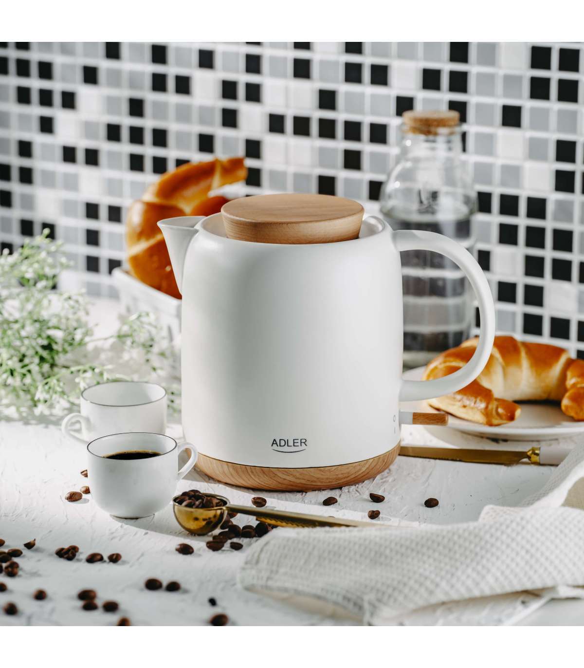 Adler Electric Kettle | AD 1304 | Electric | 1200 W | 1 L | Ceramic | 360° rotational base | White