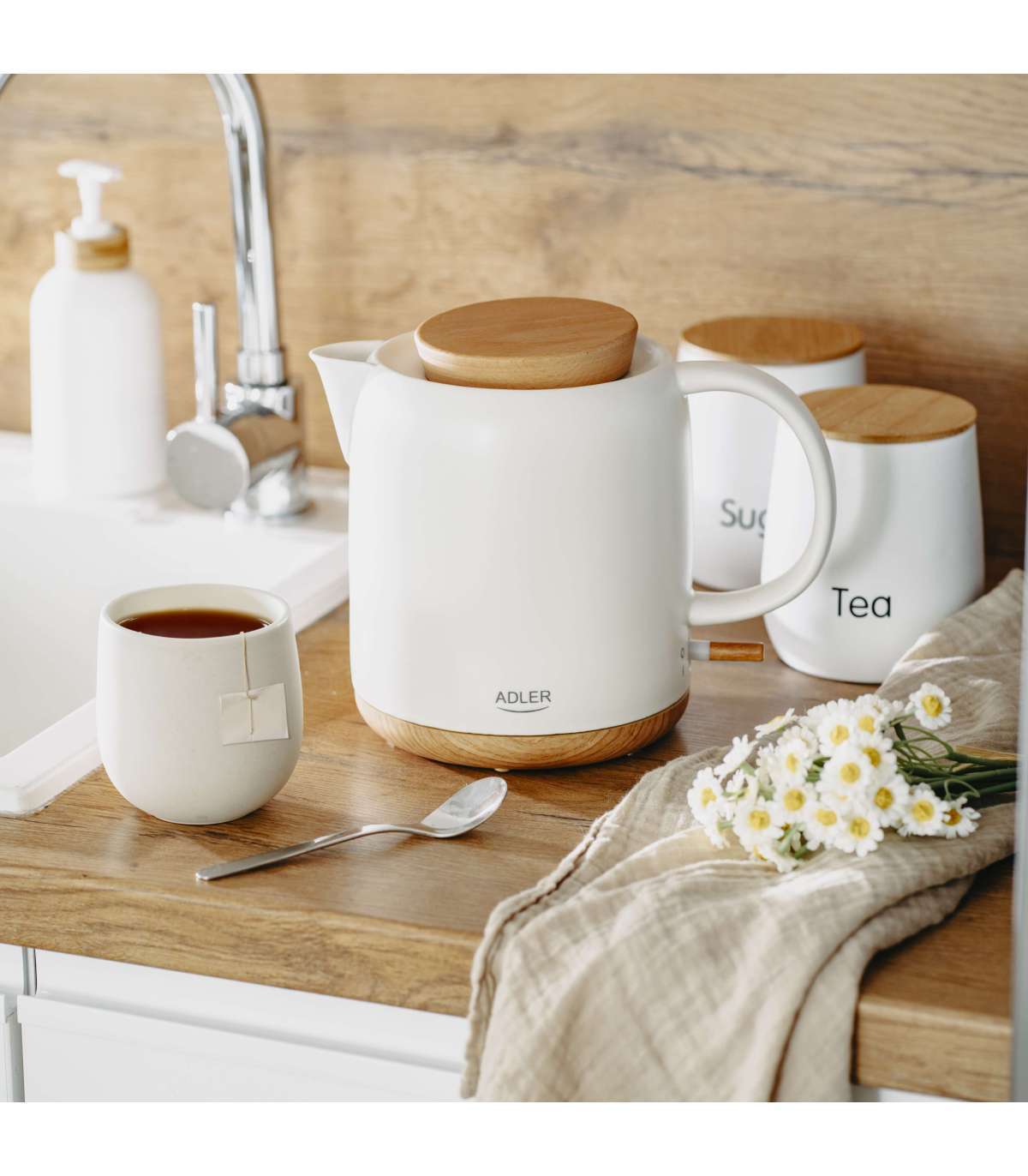 Adler Electric Kettle AD 1304 Electric 1200 W 1 L Ceramic 360° rotational base White