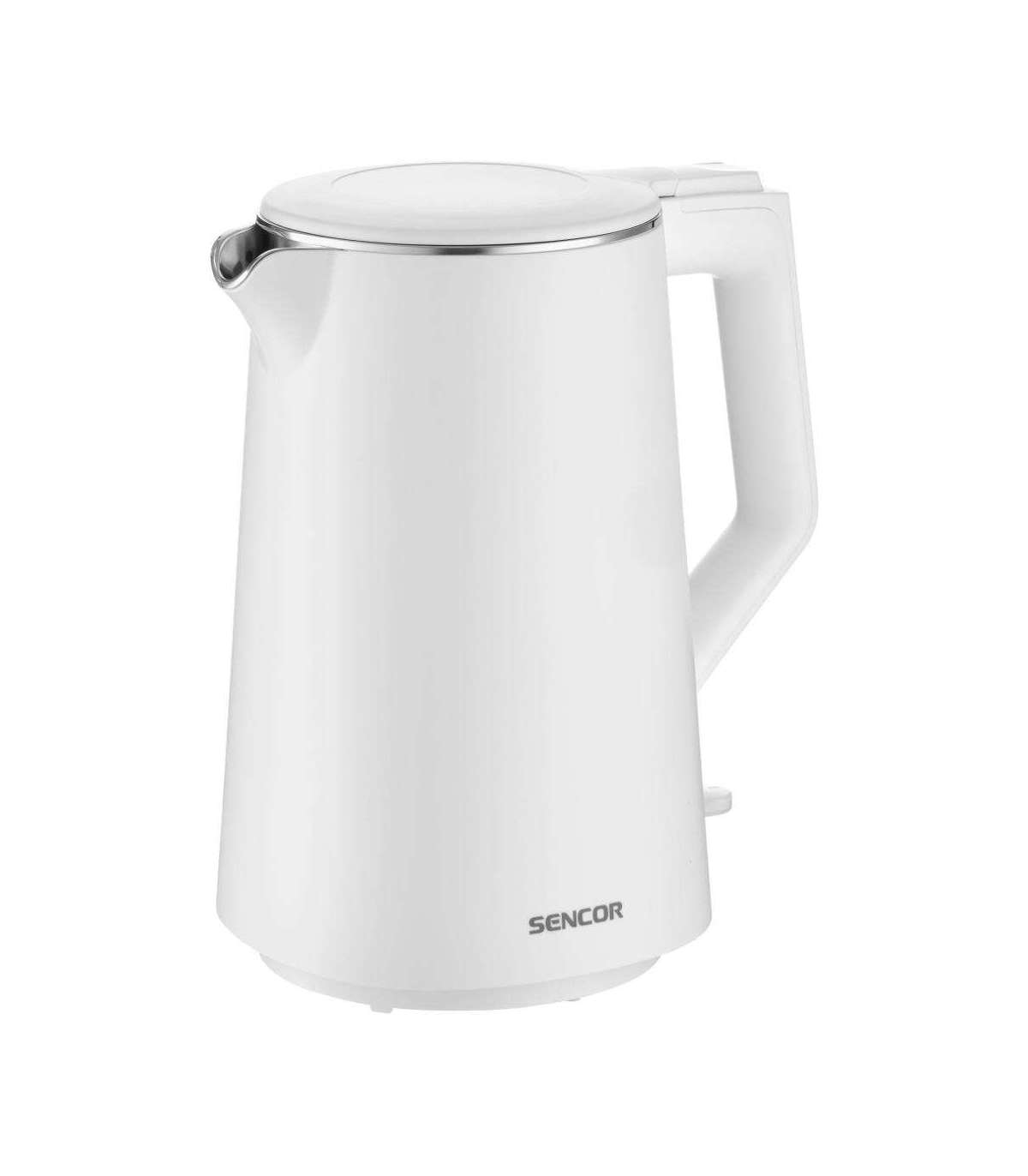 The double wall kettle Sencor SWK0550WH is made of stainless steel and plastic.