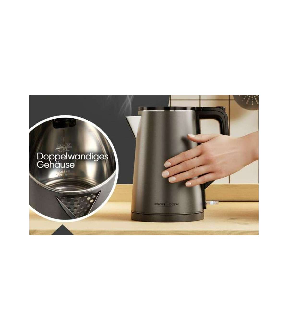 Proficook kettle with double-walled thermal housing and high-quality stainless steel container!