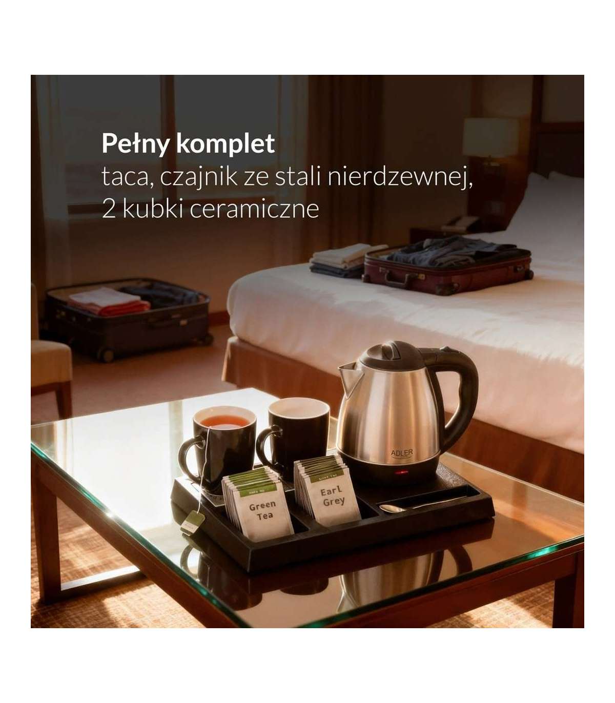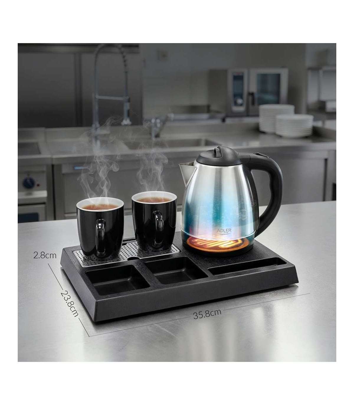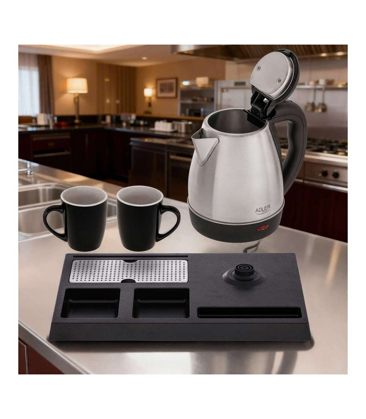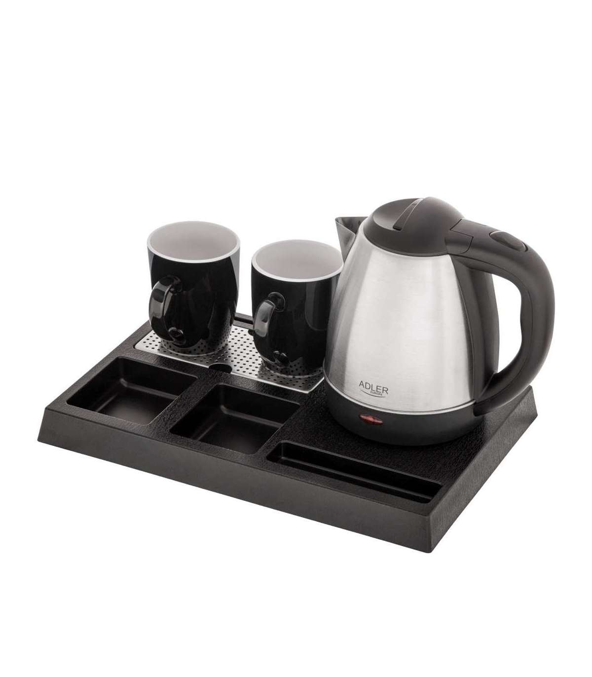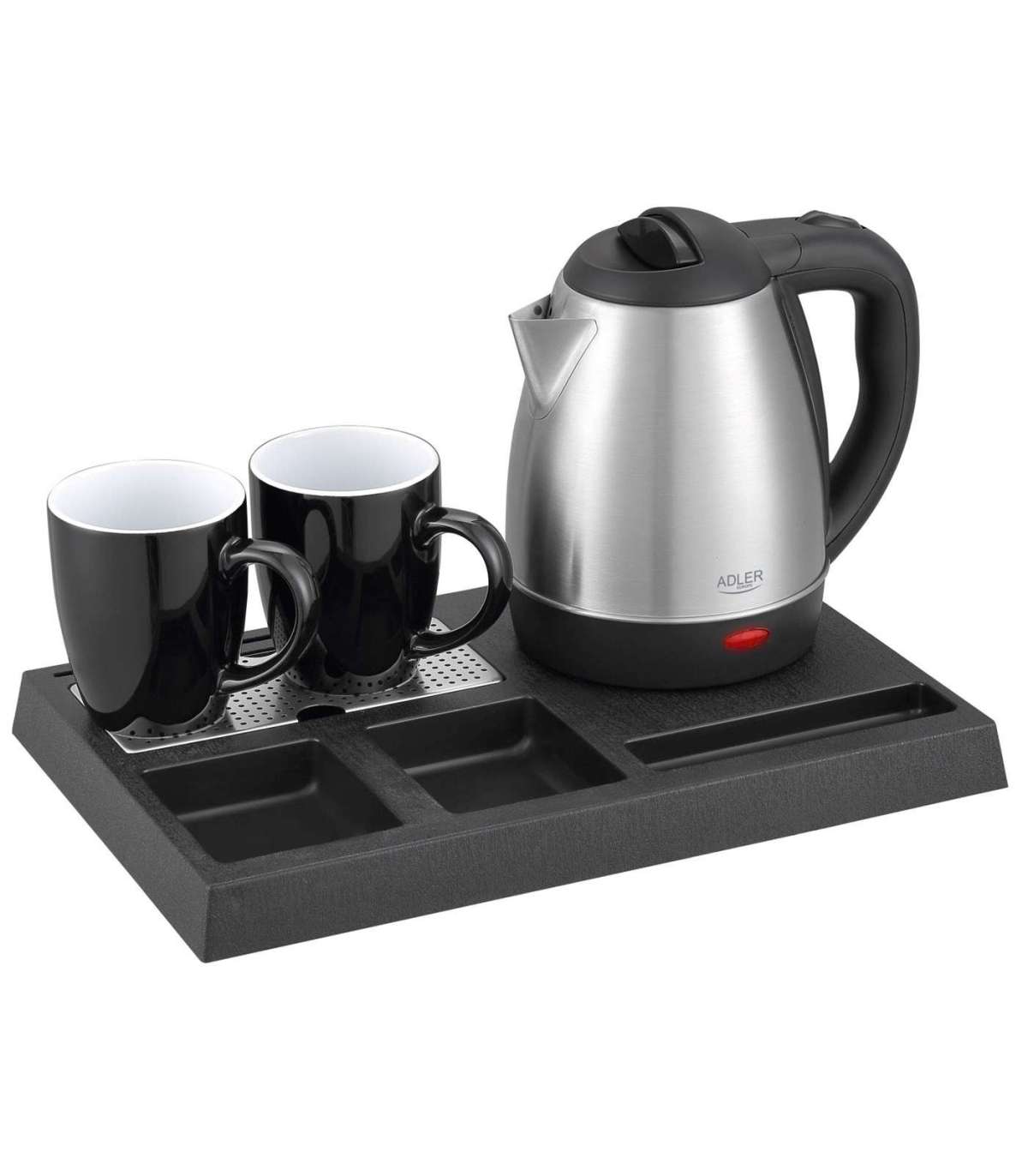 Adler AD 1354 Hotel kettle stainless steel 1.2 L + tray with cups black, steel